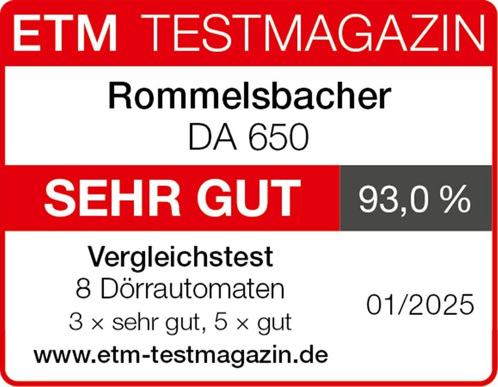 خشک‌کن میوه روملزباخر مدل DA 650 با طراحی استاندارد آلمان و کیفیت ساخت بالا مناسب استفاده خانگی است.این دستگاه با ۶ سینی خشک‌کن به شما اجازه می‌دهد مقدار زیادی میوه یا سبزی را در یک زمان خشک کنید.کنترل دما و گردش هوای یکنواخت کمک می‌کند تا غذاها به صورت یکدست خشک و با حفظ ارزش غذایی آماده شوند.