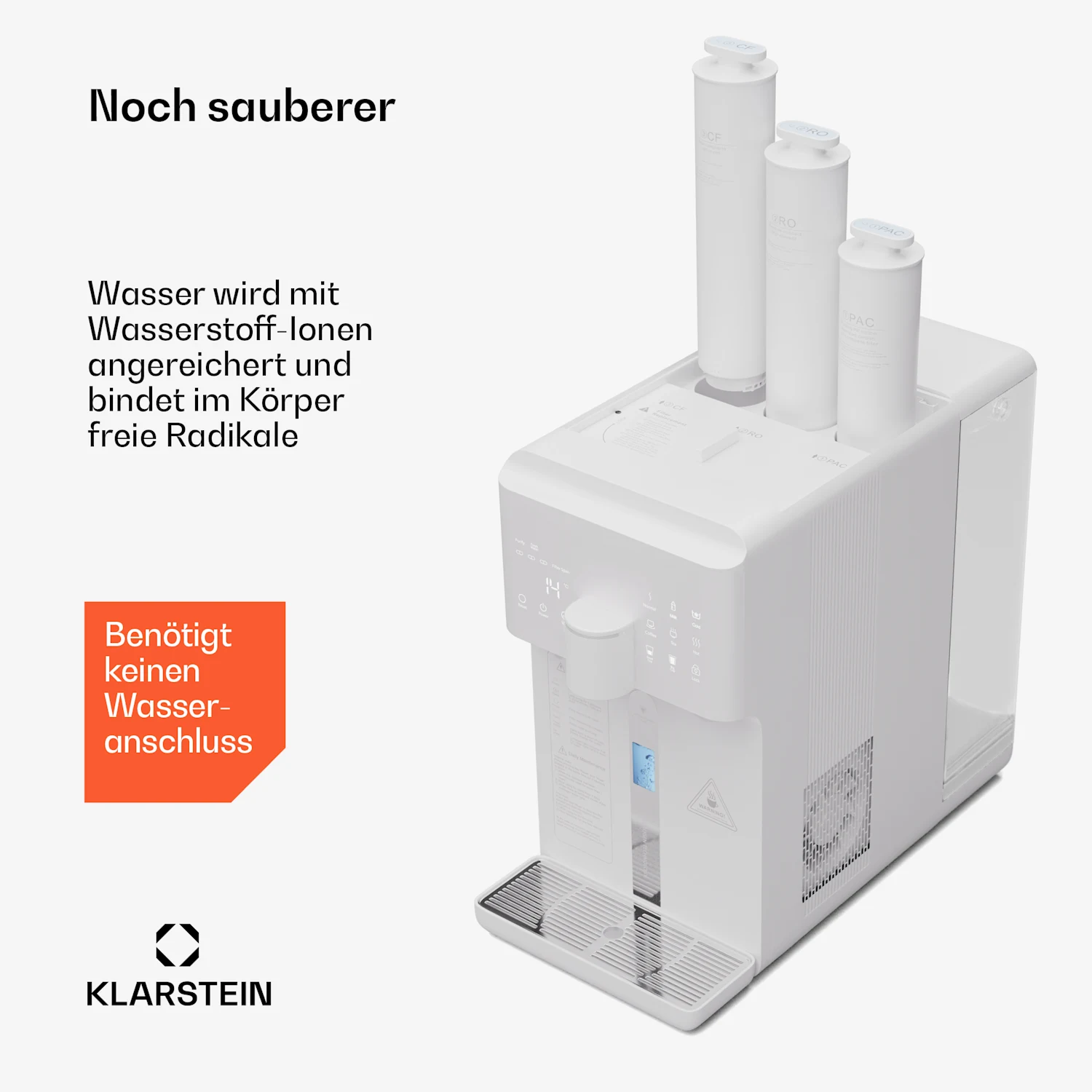 دستگاه تصفیه آب Klarstein AquaFina 6L با سیستم اسمز معکوس نوآورانه و ویژگی های اضافی خود انقلابی در تصفیه آب ایجاد می کند. با سیستم فیلتر سه مرحله ای و پنج مرحله تصفیه آب شیرین و خوشمزه را تضمین می کند. این سیستم از یک پیش فیلتر 2 در 1، یک غشای اسمز معکوس و یک فیلتر پس از 2 در 1 تشکیل شده است.