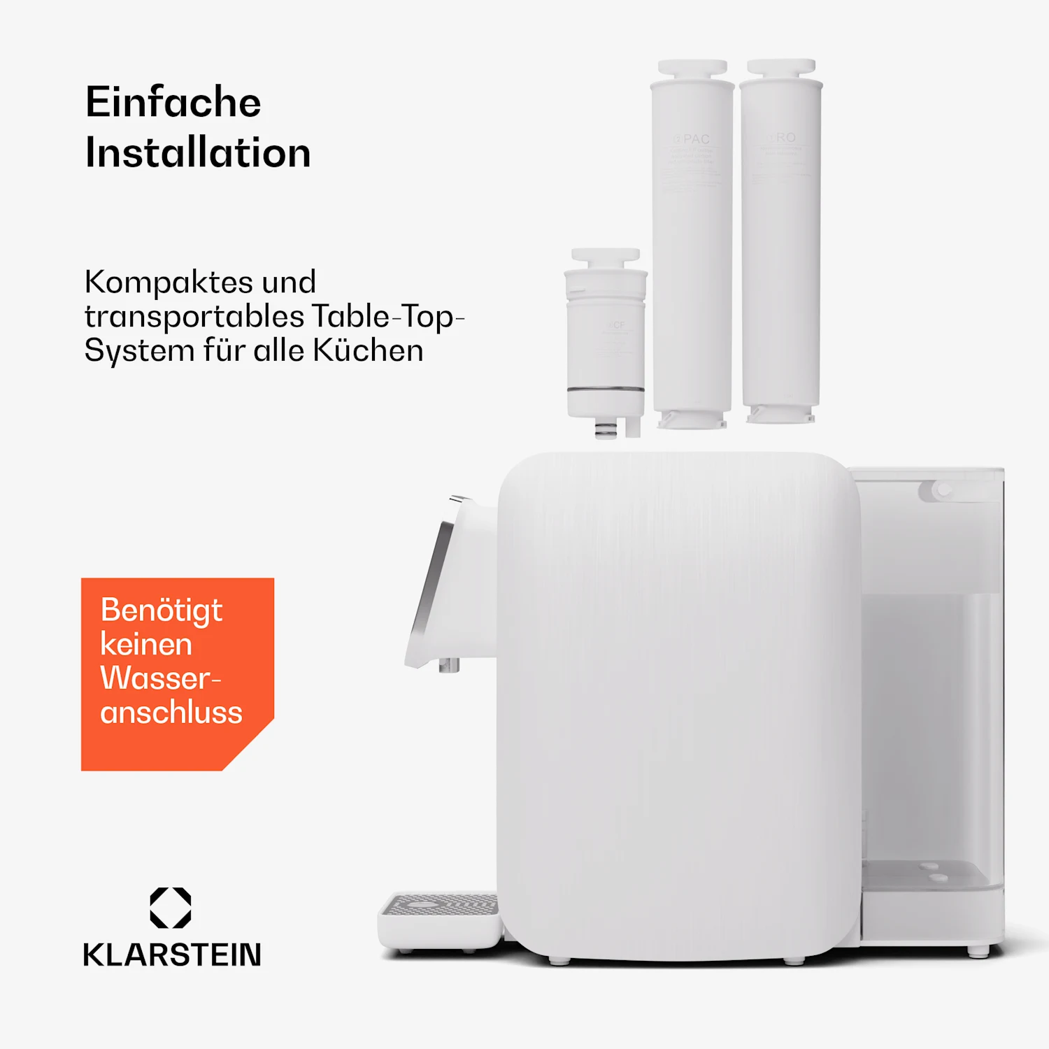 طراحی مدرن روی میز، دستگاه تصفیه آب را فشرده و قابل حمل می کند و برای هر آشپزخانه ای مناسب است. نصب آسان است، بدون نیاز به منبع آب یا سوراخ. مخزن 3 لیتری قابل جابجایی امکان تمیز کردن آسان و پر کردن راحت در هر شیر آب را فراهم می کند.