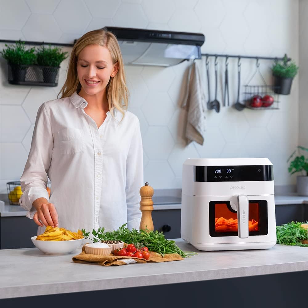 Cecotec Heißluftfritteusen 6L Cecofry Experience Window White 6000. 1300 W, PerfectCook-Technologie, einstellbare Temperatur, Fenster, Touch-Bedienfeld, 9 Modi, Timer, Weiß | قیمت یورویی 69.9€