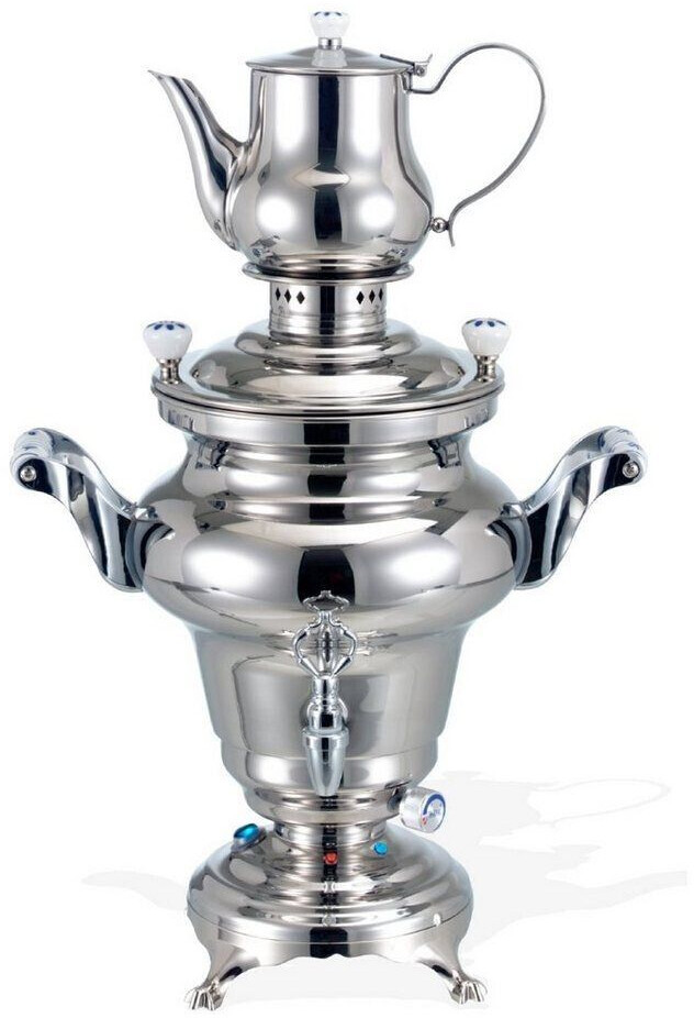 سماور کلاسیک Beem مدل Rebecca III با بدنهای از استیل ضدزنگ، ظرفیت ۵ لیتری و قوری استیل ضدزنگ، انتخابی ایدهآل برای چایدوستان حرفهای با طراحی آلمانی اصیل است.