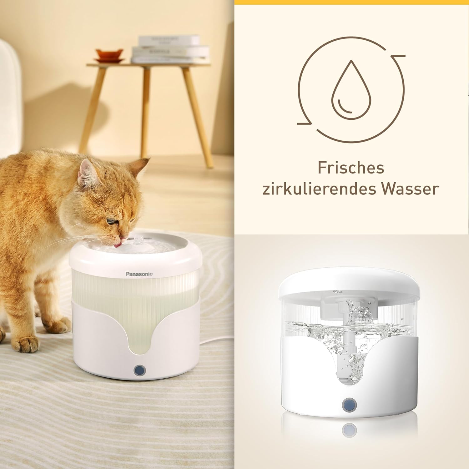 GESUNDES TRINKWASSER: Dieser Trinkbrunnen verfügt über frisches, zirkulierendes Wasser und ein erstklassiges 4-Lagen-Filtersystem, das Haare, restliches Chlor und andere Partikel herausfiltert, damit Ihre Haustiere immer sauberes Wasser trinken ULTRA-LEISE: Dieser Brunnen eignet sich perfekt für den nächtlichen Gebrauch. Er verfügt über einzigartige Wasserwege und eine 5-V-Wasserpumpe, die mit nahezu unhörbaren 25 dB arbeitet ELEGANTES DESIGN: Mit einem Fassungsvermögen von 1,9 Litern fügt sich das transparente Design nahtlos in jeden Raum ein und ermöglicht Ihnen eine einfache Überwachung des Wasserstands 2 FONTÄNEN-MODI: Passen Sie das Trinkerlebnis Ihres Haustiers an, entweder mit einem gleichmäßigen Strahl oder mit einem Strahl, der nach 2 Minuten eine 5-minütige Pause einlegt AUSTAUSCHBARE FILTER: Ideale Wasserqualität mit Ersatzfiltern, die einmal im Monat ausgetauscht werden, bestehend aus einem Maschenfilter, PET-Baumwolle, Aktivkohle + Ionenaustauschharz sowie PET-Baumwolle + ABS-Abdeckung, um Haare und Verunreinigungen zu entfernen PANASONIC SICHERHEIT: Materialien, die mit Wasser in Kontakt kommen, werden sorgfältig ausgewählt. Geprüftes solides Netzkabel und Netzteil | قیمت یورویی : 60.88€