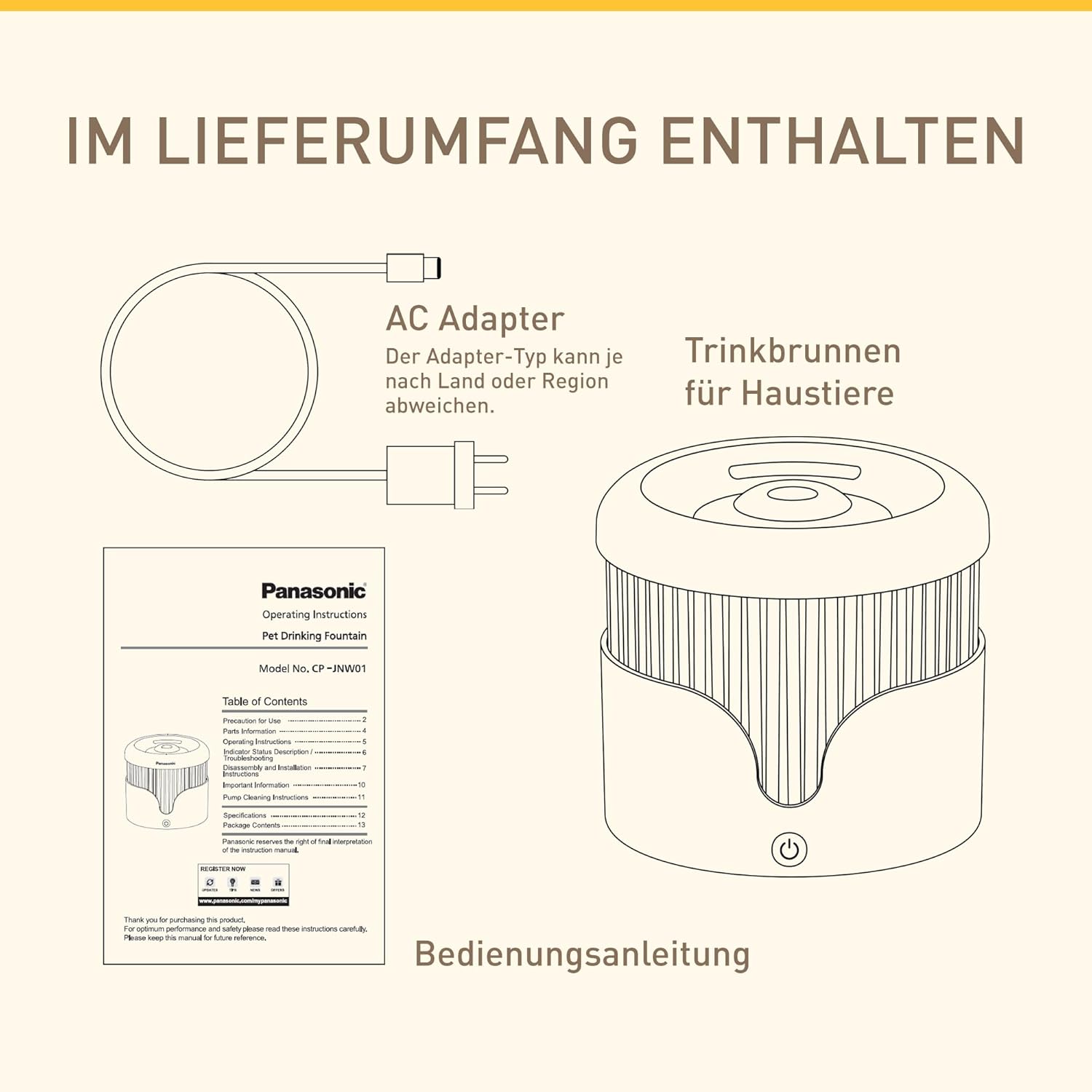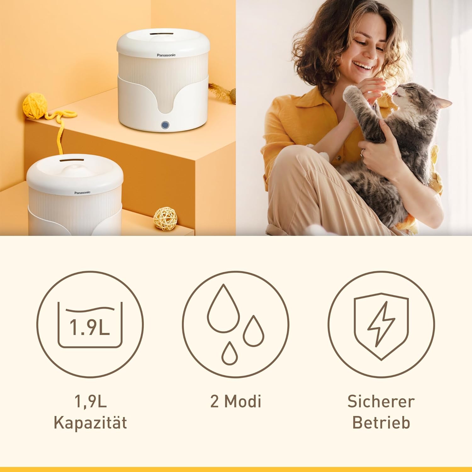 Panasonic CP-JNW01CW Trinkbrunnen für Haustiere, Wasserbrunnen für Katzen & kleine bis mittelgroße Hunde, 1,9 Liter Fassungsvermögen, 4-Lagen-Filter, leise, Zwei Brunnenmodi, Weiß | قیمت یورویی 60.88€