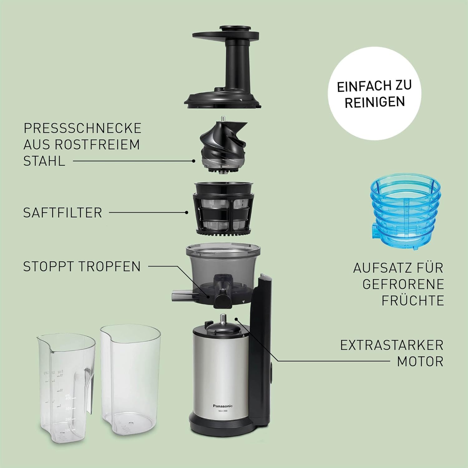 Panasonic MJ-L500S Slow Juicer / Entsafter / 2 Einsätze für Säfte & tiefgefrorene Zutaten / Frozen Joghurt / Silber | قیمت یورویی 139.99€