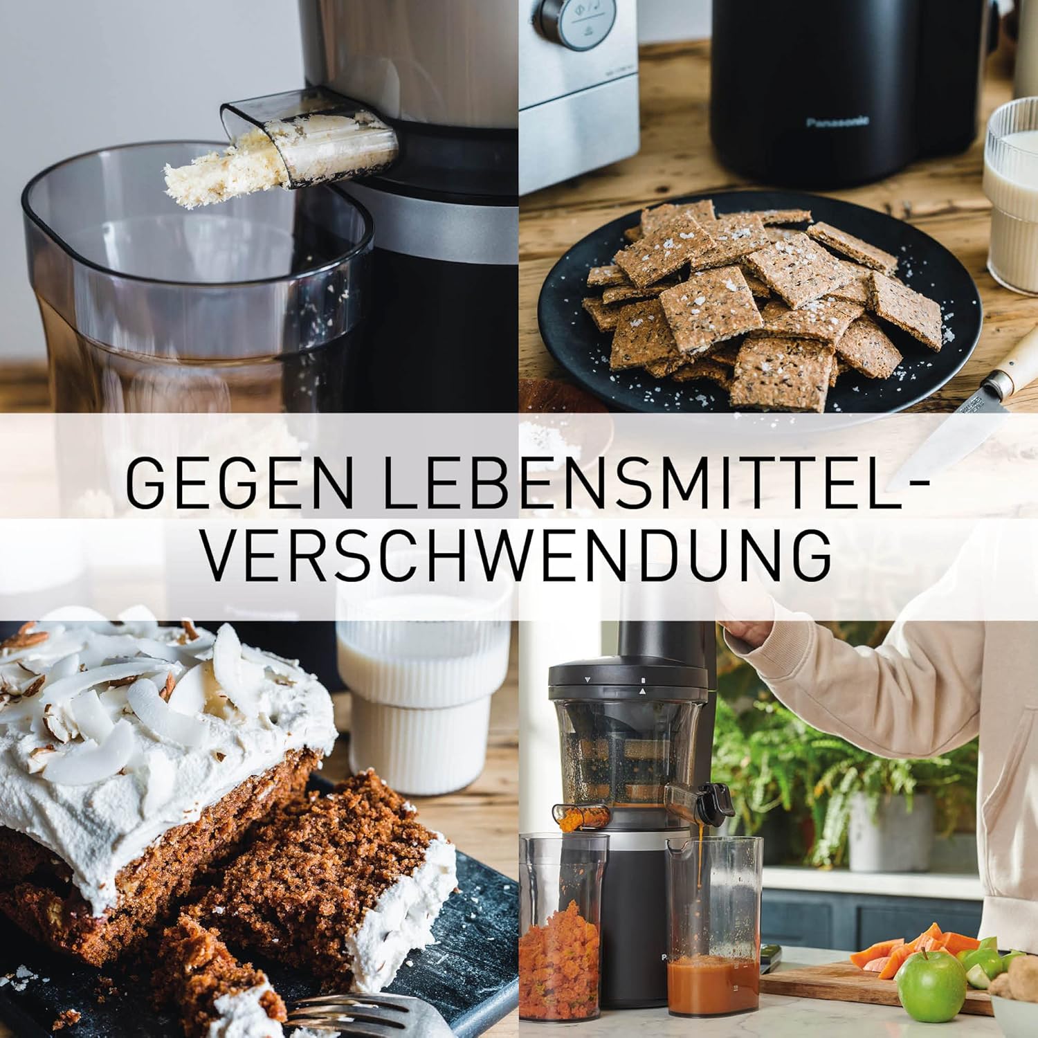 Panasonic Slow Juicer MJ-L700KXE, elektrische Fruchtpresse, Entsaften von ganzen Früchten und Gemüse, 75-mm Öffnung, schlankes Design, sicher und praktisch, Schwarz, Mattschwarz Single | قیمت یورویی 199€