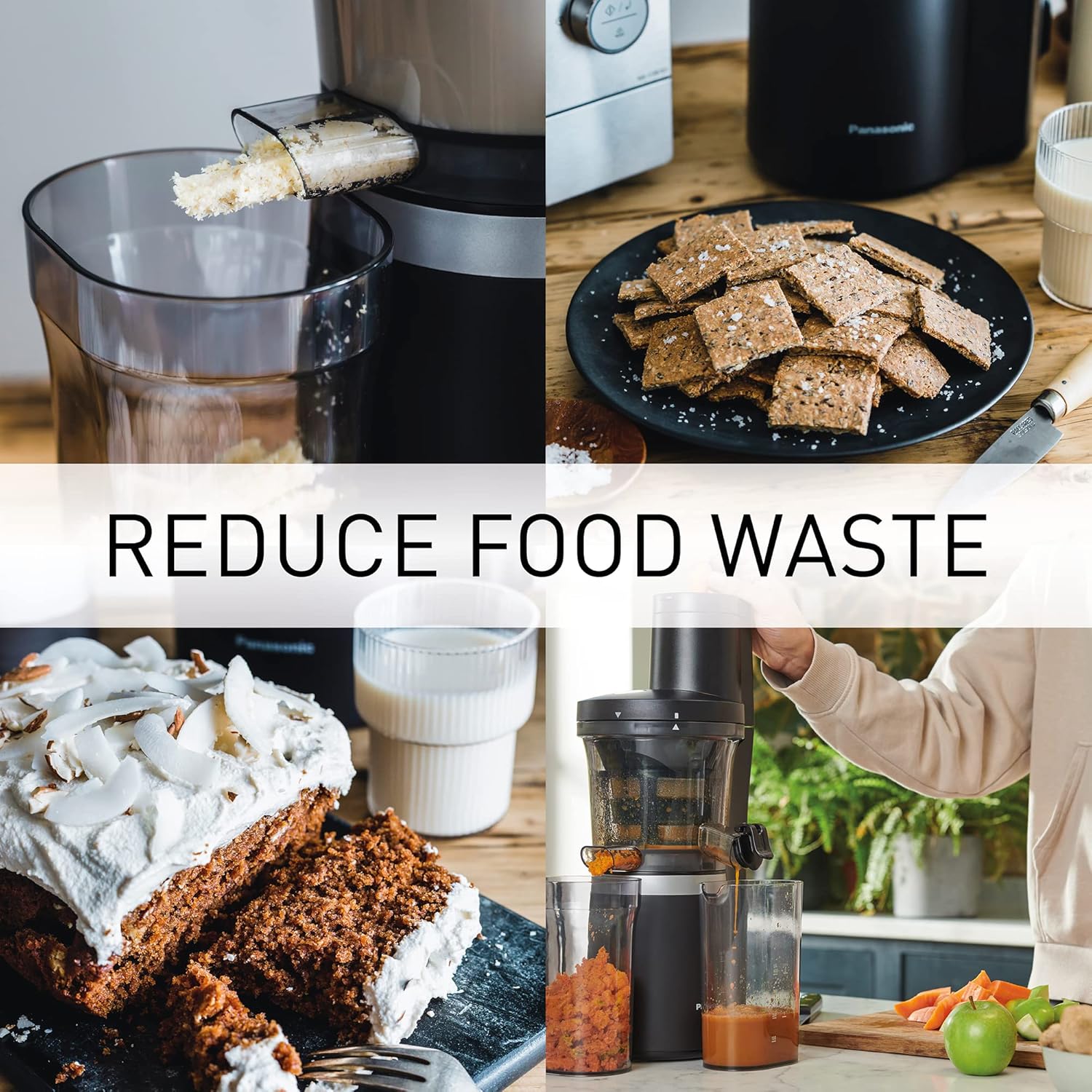 Panasonic Slow Juicer MJ-L700KXE, elektrische Fruchtpresse, Entsaften von ganzen Früchten und Gemüse, 75-mm Öffnung, schlankes Design, sicher und praktisch, Schwarz, Mattschwarz Single