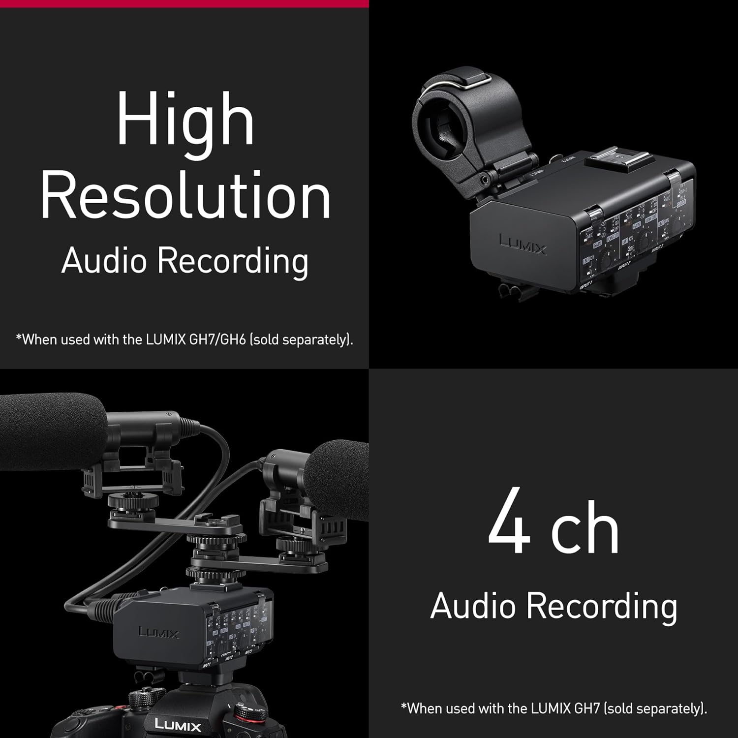 Panasonic Lumix DMW-XLR2 XLR-Mikrofonadapter für die Panasonic Lumix DC-GH7, 32-Bit-Float-Aufnahme, 4-Kanal- & hochauflösendes Audio, Mikrofonhalter, 3,5-mm-Stereo-Minibuchse. Schwarz | قیمت یورویی 449€