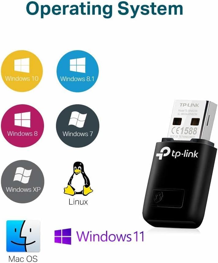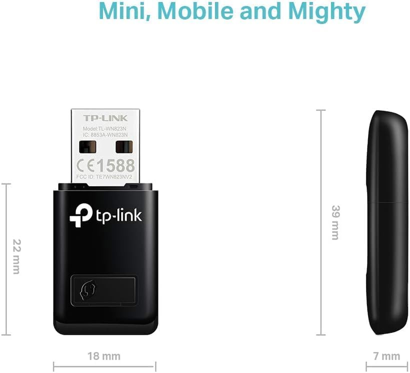 TP-Link TL-WN823N WLAN USB Stick (300Mbit/s 2,4 GHz, Mini Größe Adapter, WPS Taste für einfache Installation, kompatibel zu Windows 11/10/8.1/8/7/XP, Mac OS 10.15 und früher) schwarz 1er Pack N300 | قیمت یورویی 7.52€