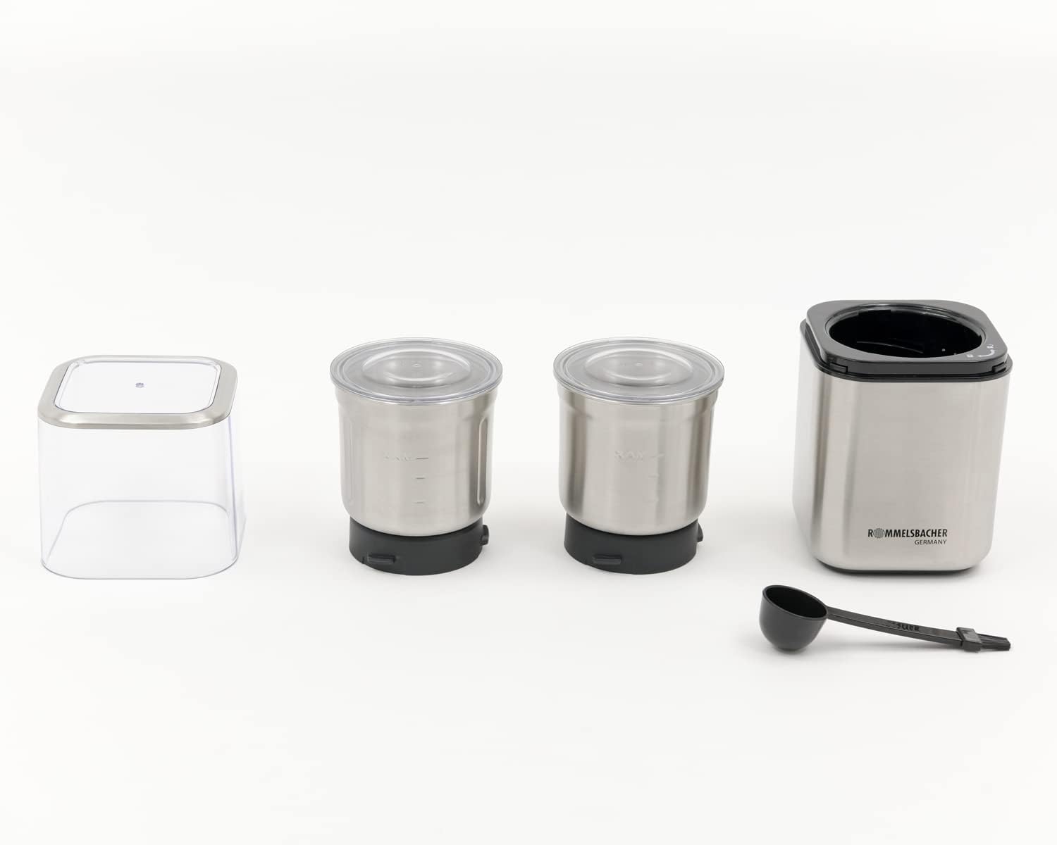 موتور قدرتمند، عملکرد بیصدا، بدنه با کیفیت بالا و مراقبت آسان، ساخته شده از فولاد ضد زنگ برس خورده مکانیزم ضربهای قوی، تنظیم آسیاب به صورت جداگانه در طول زمان آسیاب قابل تنظیم کلید روشن/خاموش با فشار دادن پوشش محفظه، کارکرد آسان و جابجایی ایمن قطعات جداشدنی قابل شستشو در ماشین ظرفشویی، درب شفاف جداشدنی، محفظهی یکپارچه برای نگهداری کابل. شامل: ۲ ظرف استیل ضد زنگ قابل تعویض، ظرفیت فوقالعاده بزرگ: ۷۰ گرم: ظرف آسیاب با تیغه استیل ضد زنگ ۲ تیغه، ظرف جهانی با تیغه مخصوص استیل ضد زنگ ۴ تیغه؛ پیمانه قهوه با برس تمیزکننده