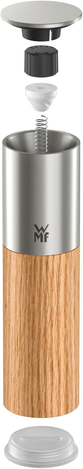 آسیاب ادویه WMF Nature Pro، مکانیزم آسیاب سرامیکی، درجه آسیاب قابل تنظیم، پر کردن آسان، آسیاب نمک و فلفل، درب نگهدارنده عطر، رنگ روشن، 0604054500