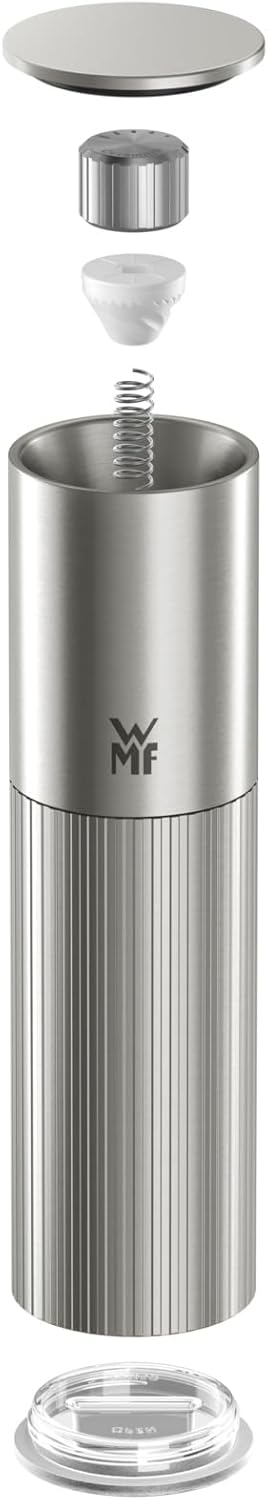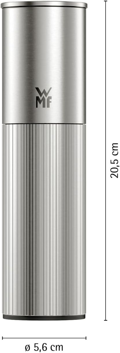 آسیاب ادویه WMF Signature Pro، مکانیزم آسیاب سرامیکی، درجه آسیاب قابل تنظیم، پر کردن آسان، آسیاب نمک و فلفل، درب مغناطیسی با قابلیت حفظ عطر، استیل ضد زنگ، 0604036030