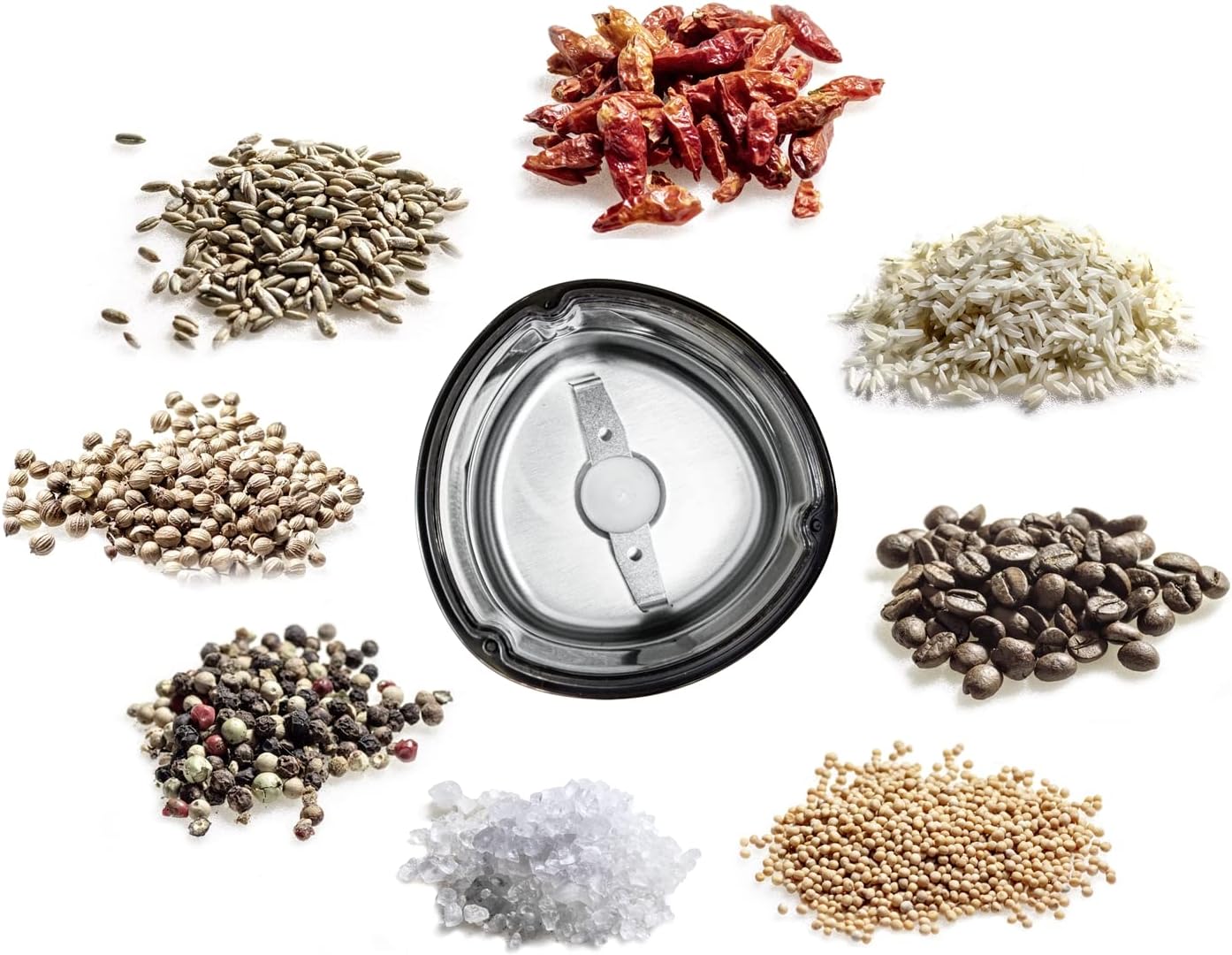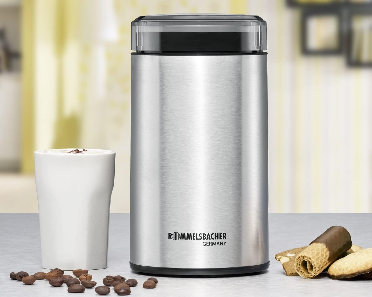 ROMMELSBACHER Kaffeemühle EKM 100 - Schlagmesser,Bohnenbehälter, Füllmenge 70 g, Mahlgrad über Mahldauer wählbar, auch für Gewürze, Zucker, Nüsse, 200 Watt | قیمت یورویی 23.04€