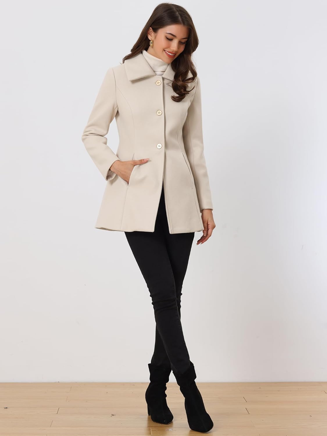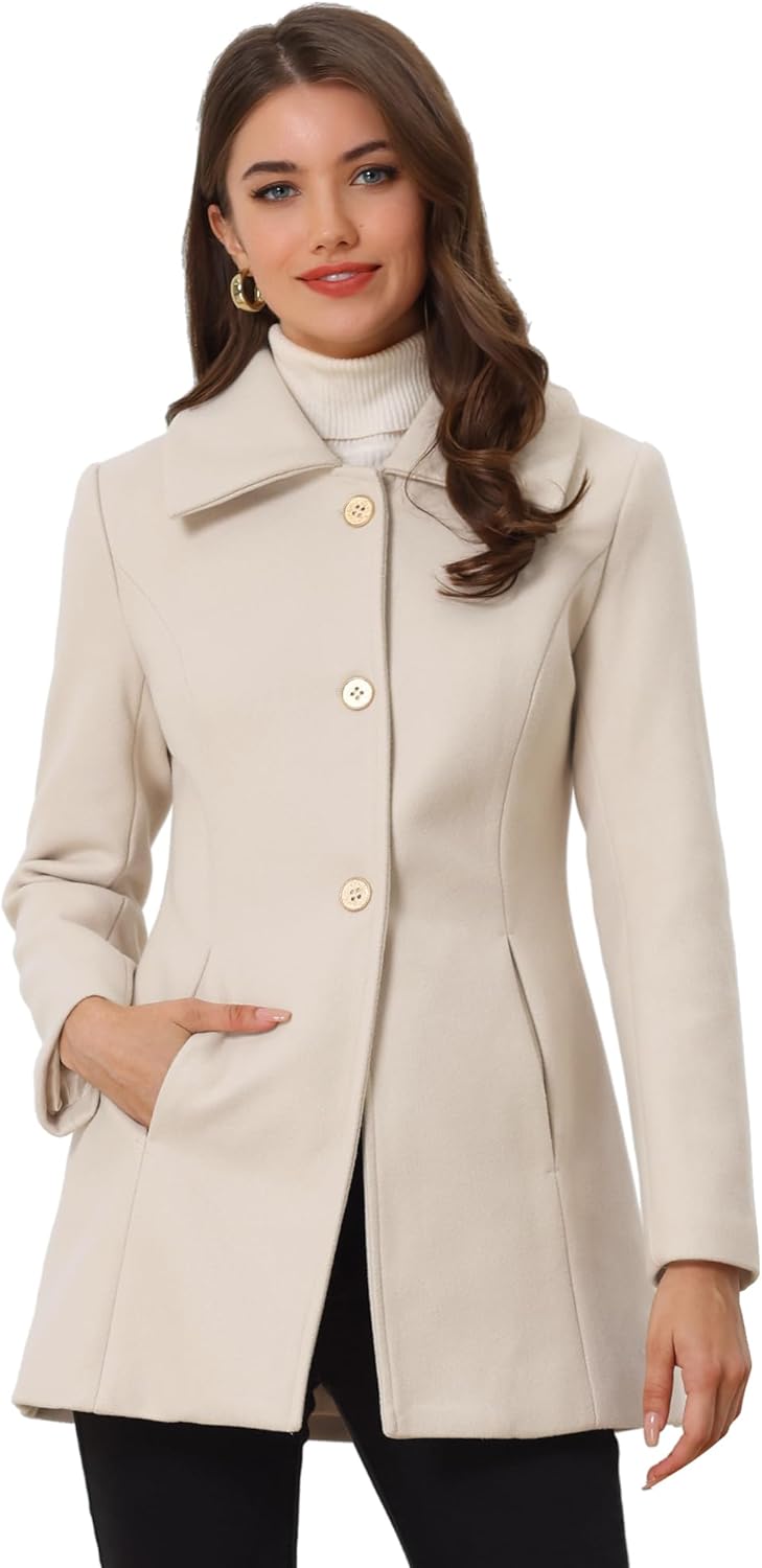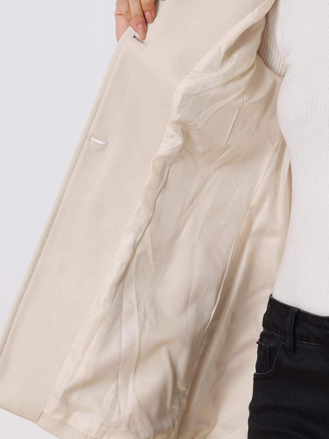 Allegra K Damen Vintage Vintage XS Cremeweiß لینک آمازون : https://www.amazon.de/dp/B0C9GR9BKN?th=1&psc=1 یقه برگشته، تک سینه، مدل A-line، جیبهای مورب، پاپیون در پشت، تماماً آستردار، قد متوسط. لبههای کمی گشاد و مدل پرنسسی، این پالتوی زمستانی را به ظاهری زیبا و دلربا تبدیل کرده است. این کت تماماً آسترکشی شده و دارای دو جیب مورب و یک پاپیون ثابت در پشت است. با ماشین لباسشویی و در دمای پایین شسته شود. اتوکشی با دمای پایین انجام شود. مدل سایز XS (قد: ۱.۵۲ متر، دور سینه: ۸۳.۸ سانتیمتر، دور کمر: ۶۱ سانتیمتر، دور باسن: ۸۹.۵ سانتیمتر، طول شانه: ۳۹.۵ سانتیمتر، وزن: ۵۵.۵ کیلوگرم) را پوشیده است.