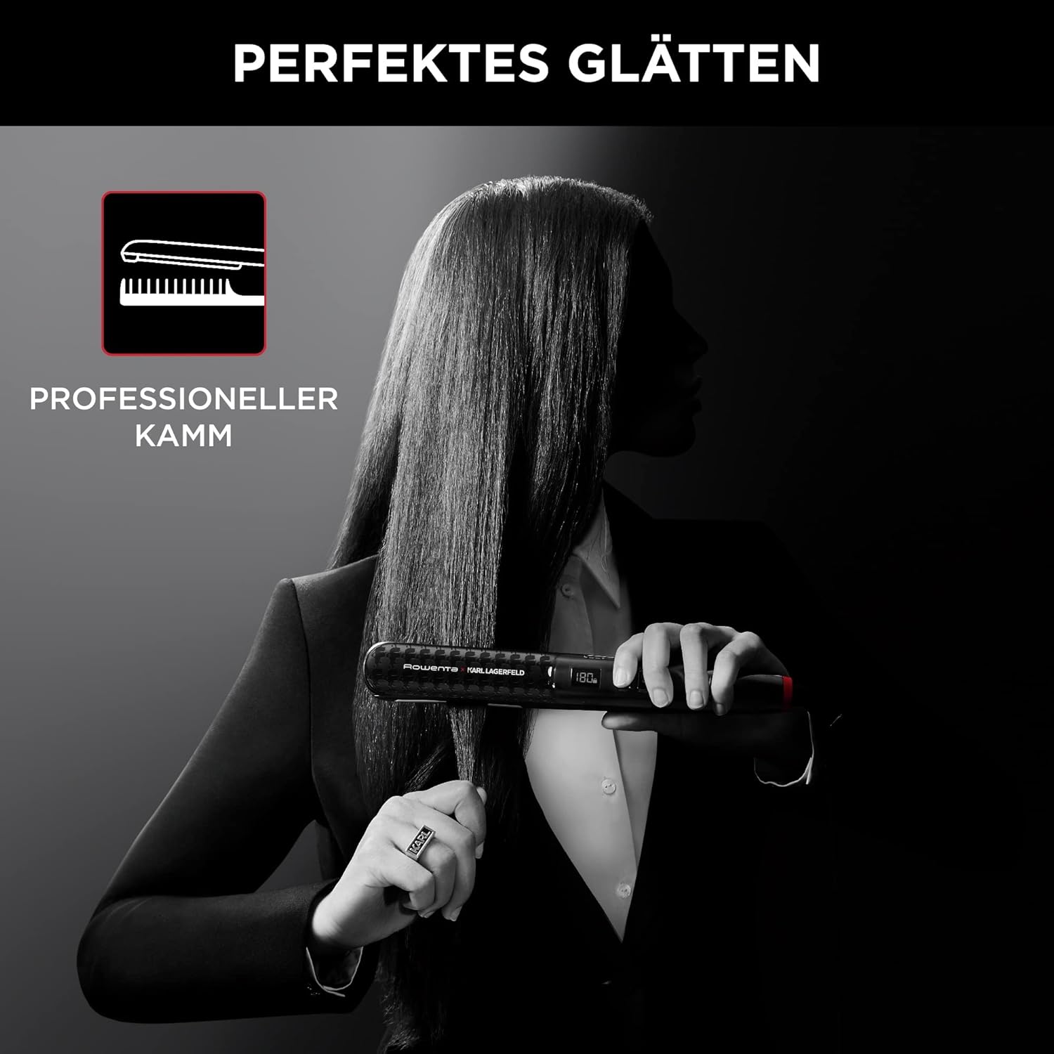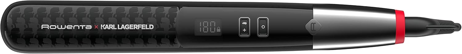 Rowenta x Karl Lagerfeld SF467L K/Pro Stylist Haarglätter, Keratin & Glow-Beschichtung, Ionen-Funktion, Federnd gelagerte Glättplatten, von 140°C bis 210°C, integrierter Kamm, Schwarz/Rot | قیمت یورویی 54.99€