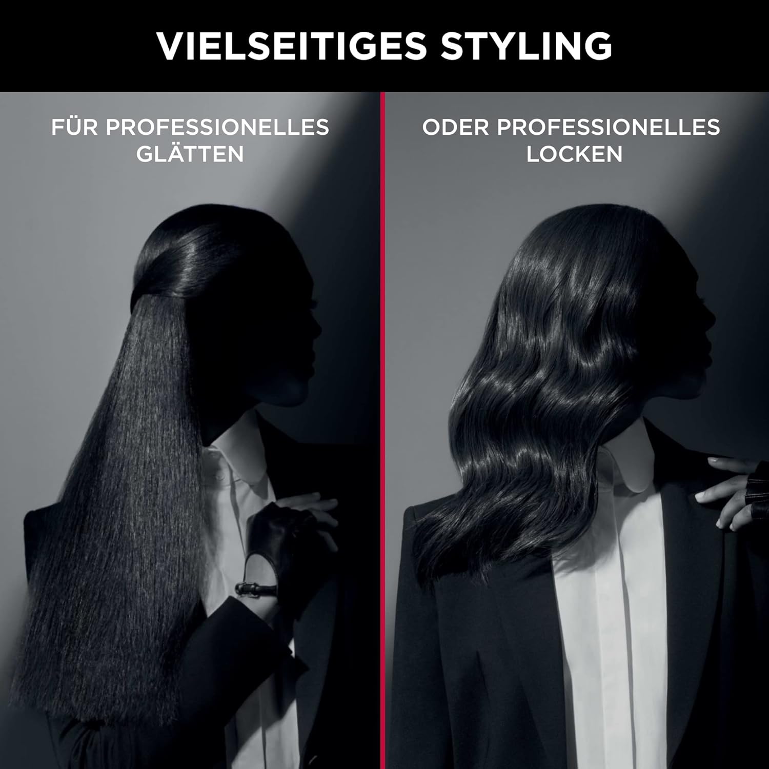 Individuell einstellbare Temperatur: Ein einfach zu verwendender Haarglätter mit Temperatureinstellungen von 140°C bis zu 210°C Optimale Haarschutztemperatur von 170°C plus fortschrittliche Wärmesensor-Technologie zur Vermeidung von Überhitzung, sowie einer Boost-Funktion mit 210°C für intensives Styling Geschmeidiges Gleiten: Erleben Sie die extreme Gleitfähigkeit mit einer exklusiven Keratin & Glow-Beschichtung welche Pro-Keratin und mineralisches Turmalin kombiniert - für wunderschönes, glattes Haar im Handumdrehen 2-in-1 Funktion: Die Straight & Curl Funktion erfüllt jeden Anspruch an ein Hairstyling- Tool, für glattes Haar oder Locken Tag für Tag wie vom Friseur Vielfältiges Zubehör: Glätteisen mit einem integrierten professionellen Kamm, hitzebeständiger Aufbewahrungsbeutel, 3 Haarspangen | قیمت یورویی : 54.99€