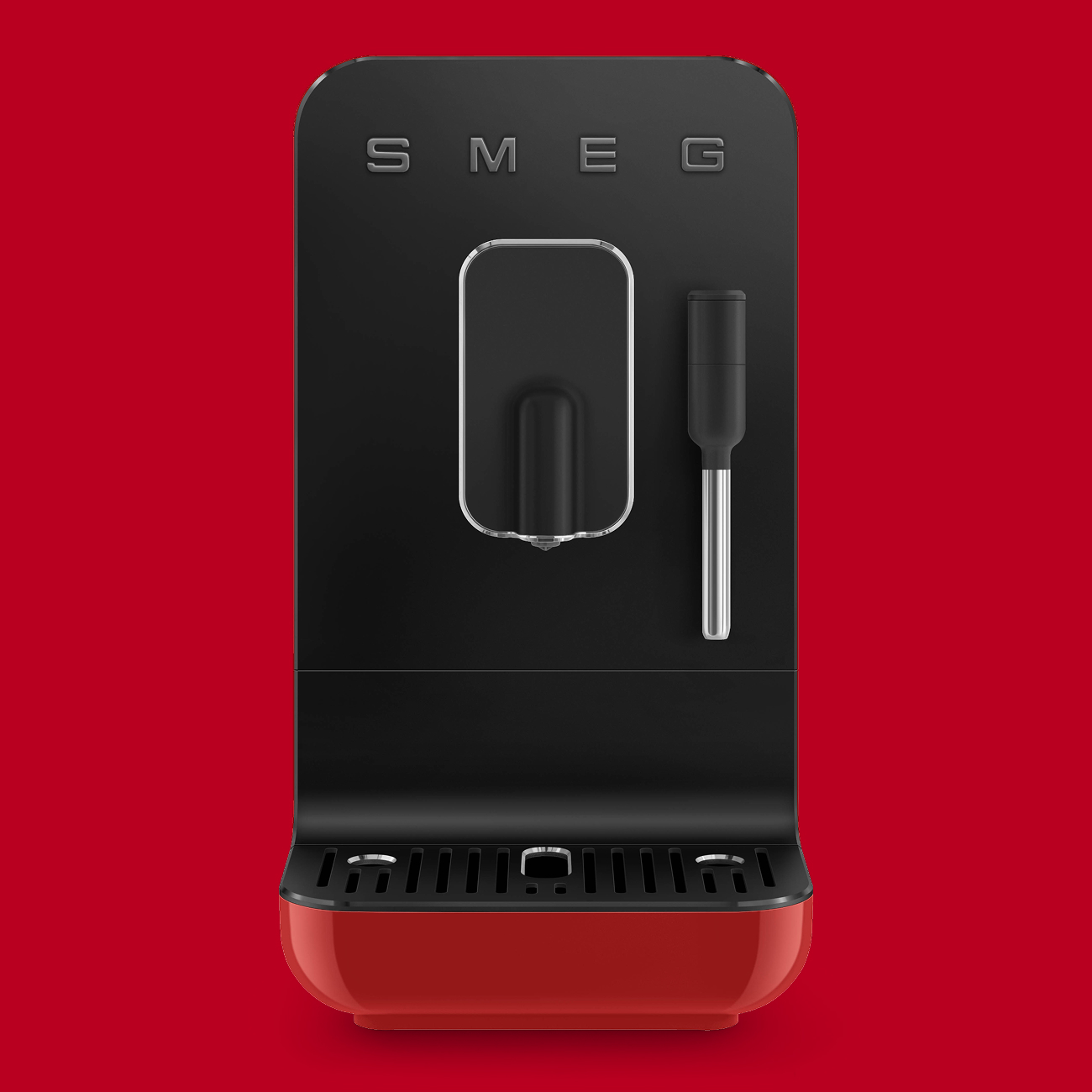 تزئینات مشکی مات، از پنل جلویی تا نازل بخار و سینی چکه، دستگاه تمام اتوماتیک Smeg شما را با تاریخ افسانهای پورشه ترکیب میکند.