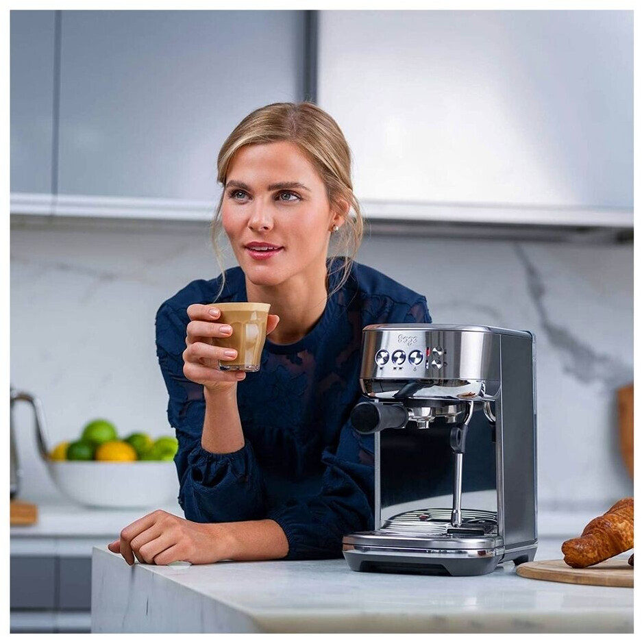 اسپرسوساز Sage The Bambino Plus با سیستم گرمایشی ThermoJet و قابلیت فومساز خودکار شیر، برای تهیه سریع قهوههای اسپرسو و نوشیدنیهای شیری در خانه بسیار مناسب است. طراحی جمعوجور و کنترل ساده آن باعث میشود استفاده از آن برای مبتدیان نیز آسان باشد.