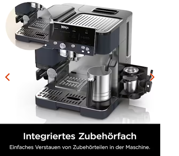 سینی فنجان قابل تنظیم: سینی در سه ارتفاع مختلف قابل تنظیم است یا حتی میتوان آن را به طور کامل جدا کرد تا فنجانهای اسپرسو و همچنین لیوانهای مسافرتی بزرگتر را در خود جای دهد. طراحی آن همچنین چکهها و پاششها را به حداقل میرساند.