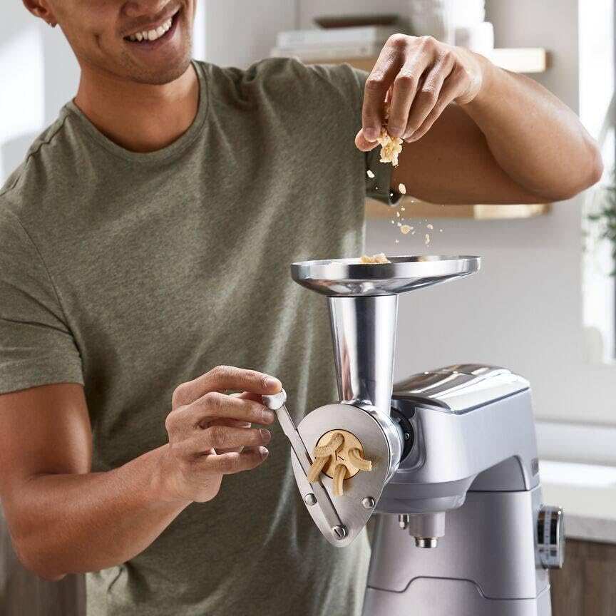 اکسسوری شکلدهنده پاستا Kenwood KAX92.A0ME با جنس استیل ضدزنگ و قالب برنجی، امکان تهیه پاستای خانگی با کیفیت عالی و شکلدهی دقیق را فراهم میکند. این محصول مناسب دستگاههای Kenwood Chef و kMix است.