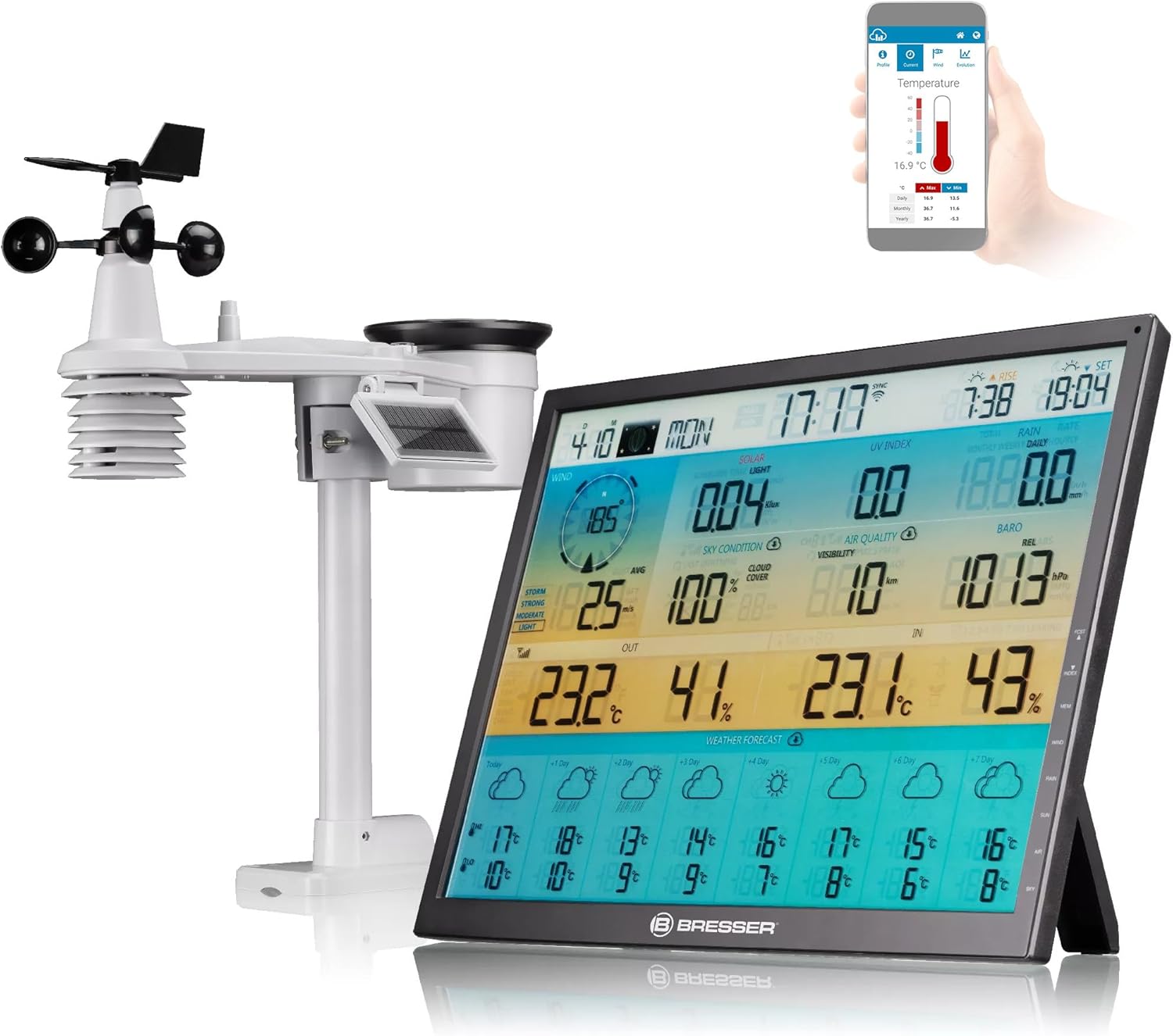 ایستگاه هواشناسی بیسیم 4CAST XL وایفای 8 روزه، با حسگر چندگانه خورشیدی، انرژی خورشیدی، بادسنج، بارانسنج، دما، رطوبت، بارش، سرعت باد، هشدار یخزدگی، هشدار یخبندان. ایستگاه هواشناسی با حسگر چندمنظوره فضای باز 7 کاره خورشیدی، بارانسنج و بادسنج.