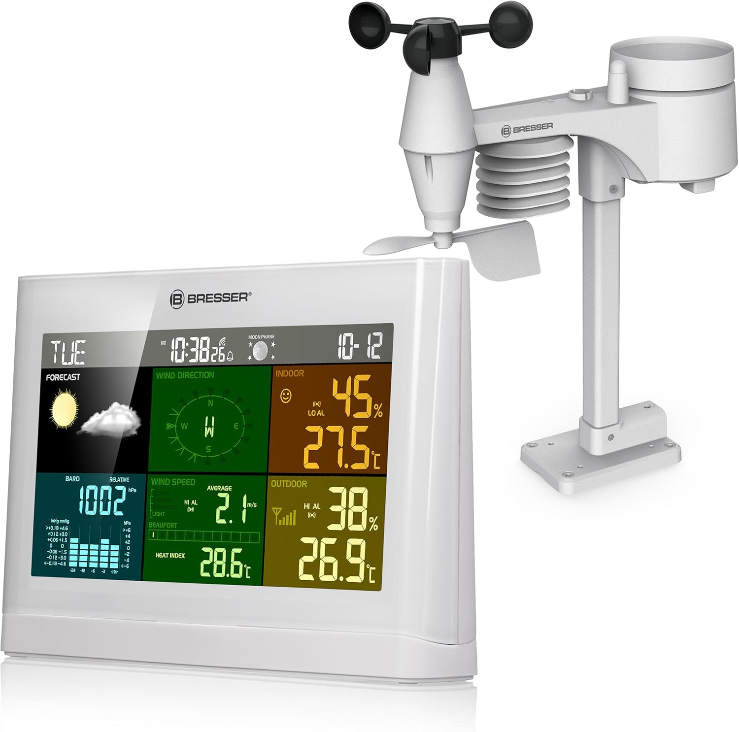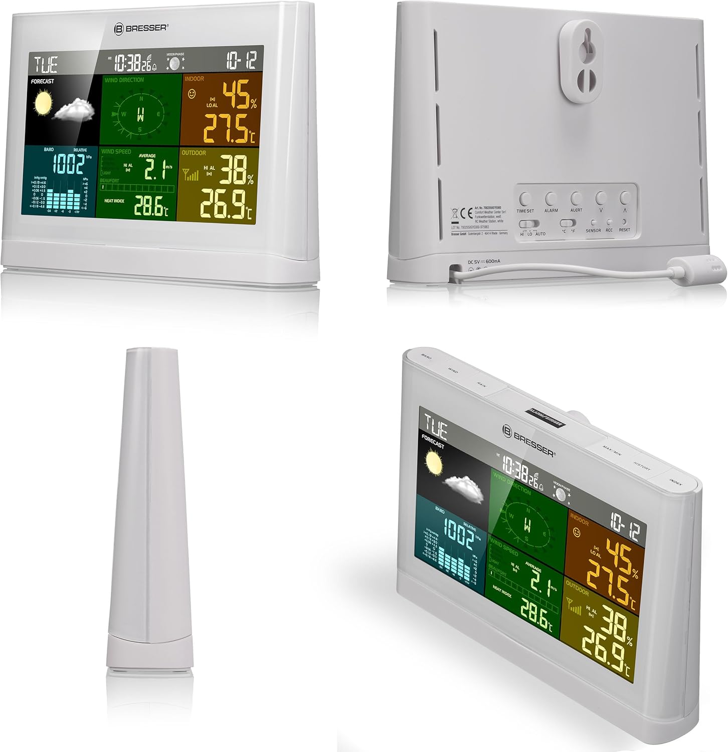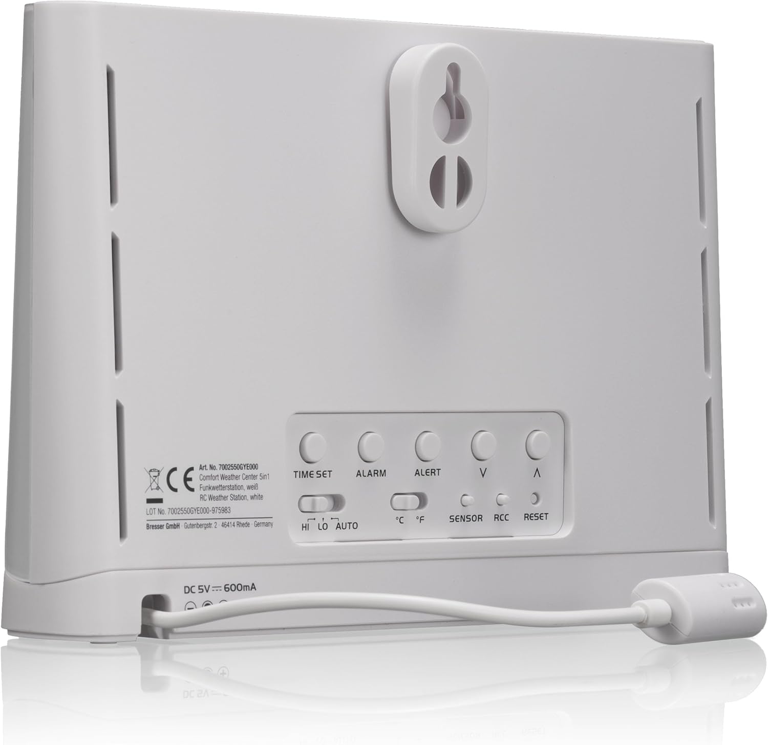 Bresser Wetterstation Funk mit Außensensor Wetter Center mit 5-in-1 Außensensor (Temperatur, Luftdruck, Luftfeuchtigkeit, Windmesser, Regenmesser), weiß weiß Single | قیمت یورویی 119.99€