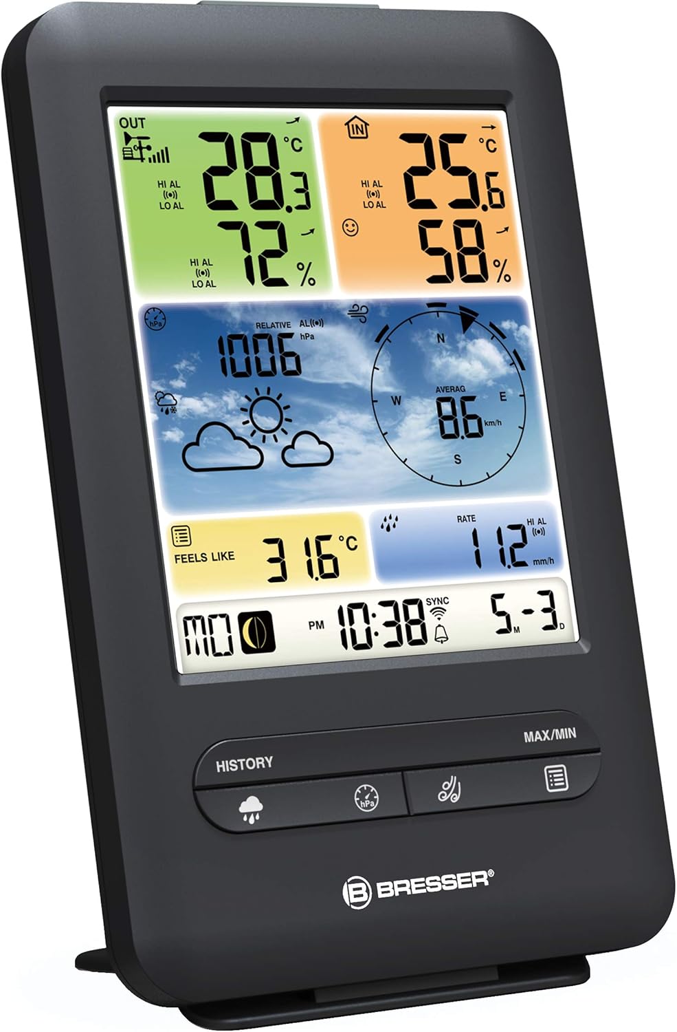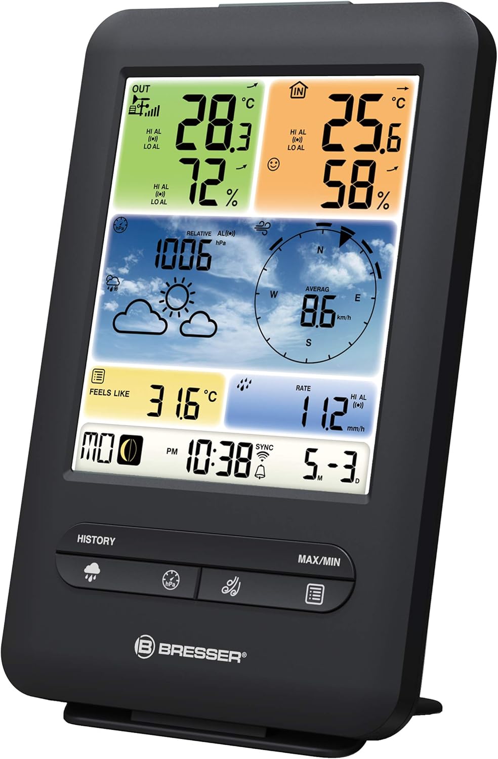 Bresser Wetterstation Funk mit Außensensor WLAN Farb-Wetter Center 5-in-1 mit Außensensor für Temperatur, Luftfeuchtigkeit, Luftdruck, Windmesser und Regenmesser, Schwarz | قیمت یورویی 119.99€