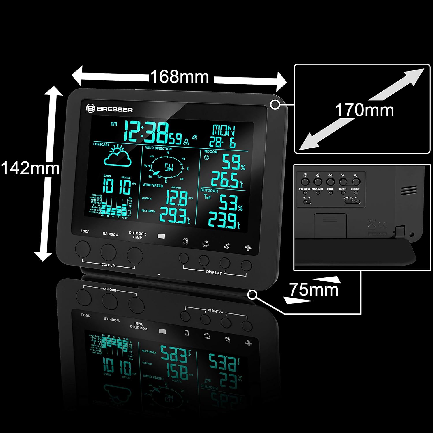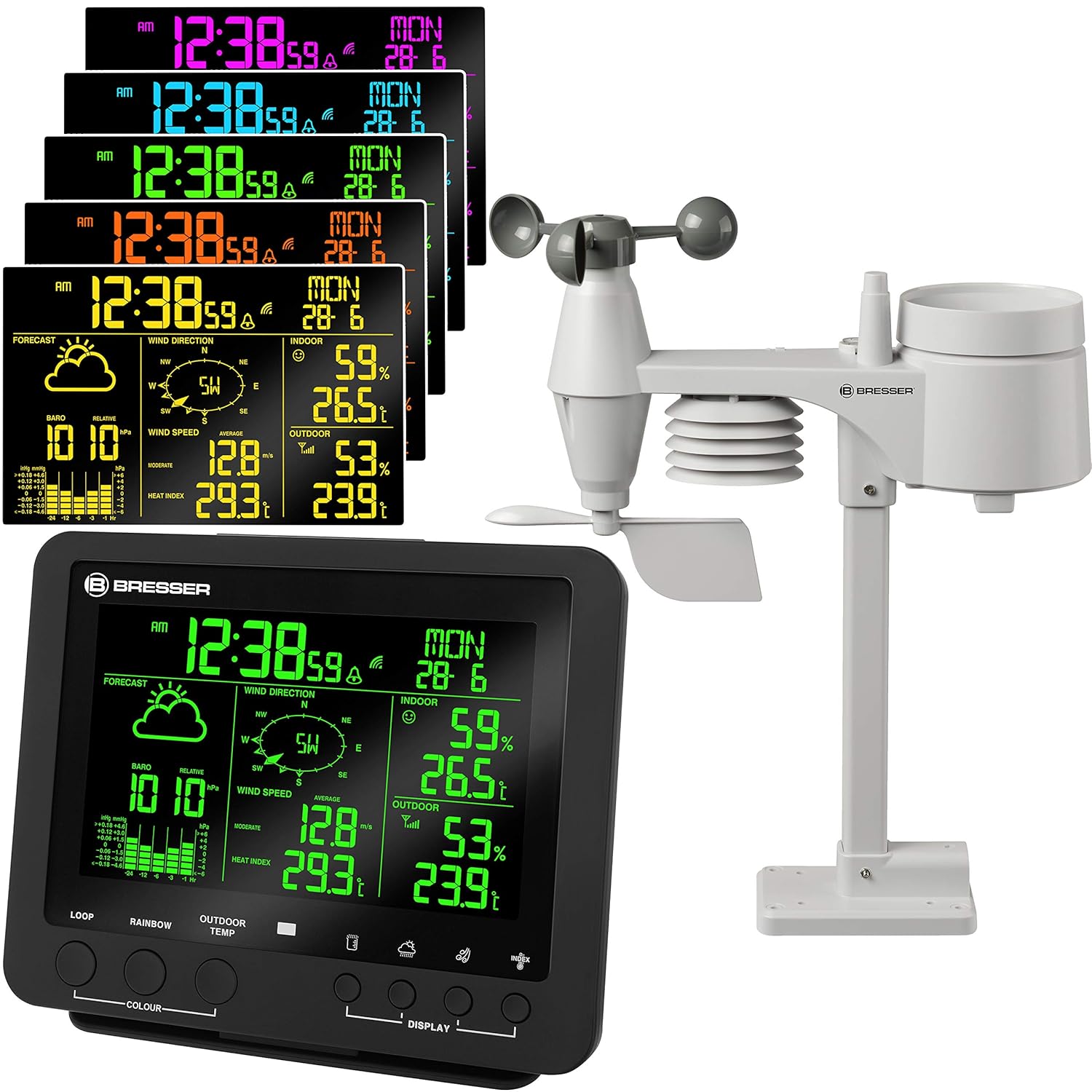 Bresser Wetterstation Funk mit Außensensor Wetter Center 5-in-1 mit 5,7 Zoll Display und Außensensor für Temperatur, Luftfeuchtigkeit, Wind, Luftdruck, Regenmesser, schwarz | قیمت یورویی 90.29€