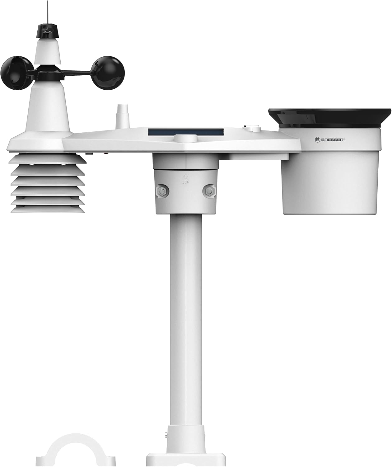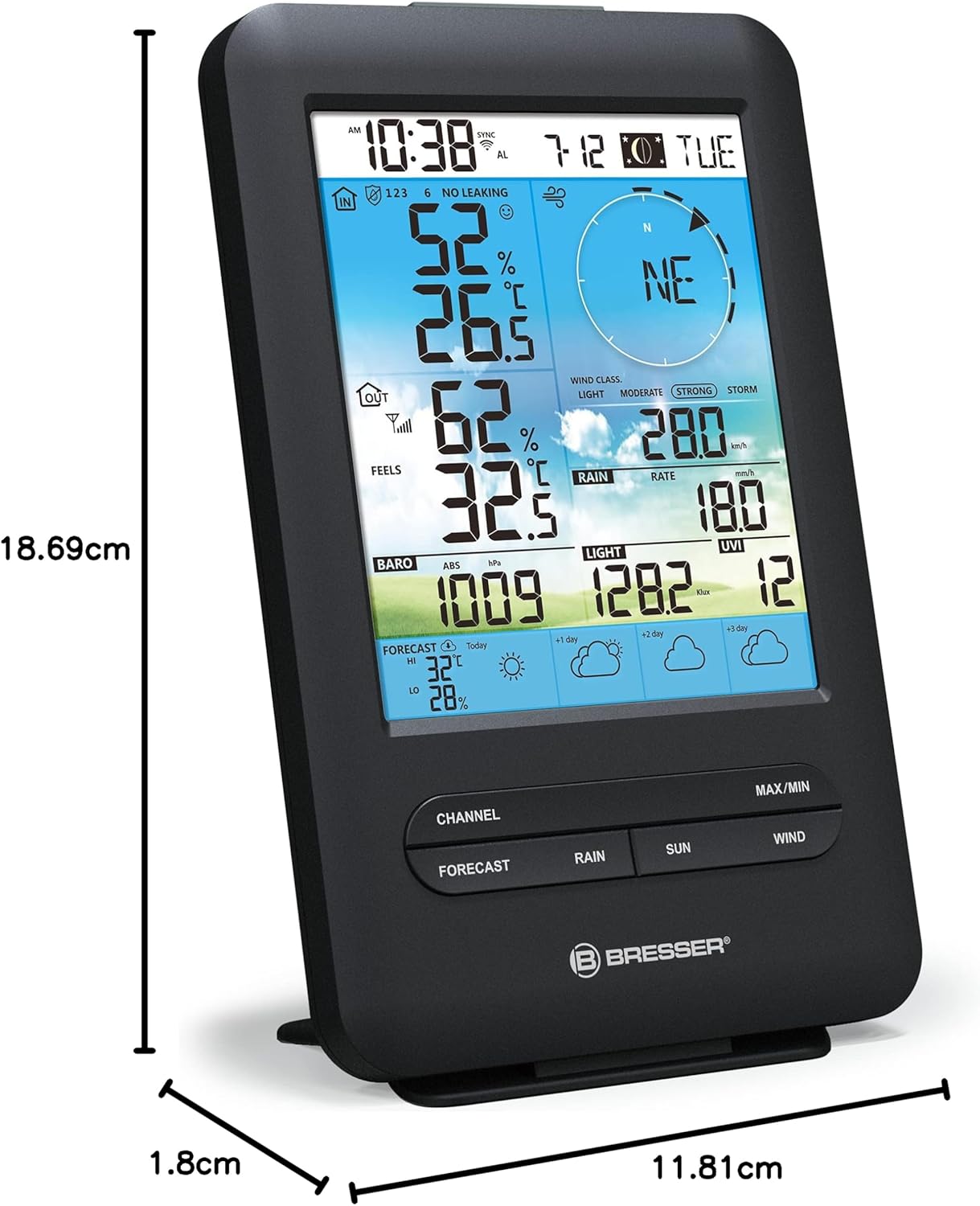 ایستگاه هواشناسی بیسیم Bresser با سنسور فضای باز، 7 کاره، وایفای 4CAST، شامل پیشبینی آب و هوای 4 روزه، بادسنج و بارانسنج، همچنین سطح اشعه ماوراء بنفش و شدت نور، تک رنگ مشکی