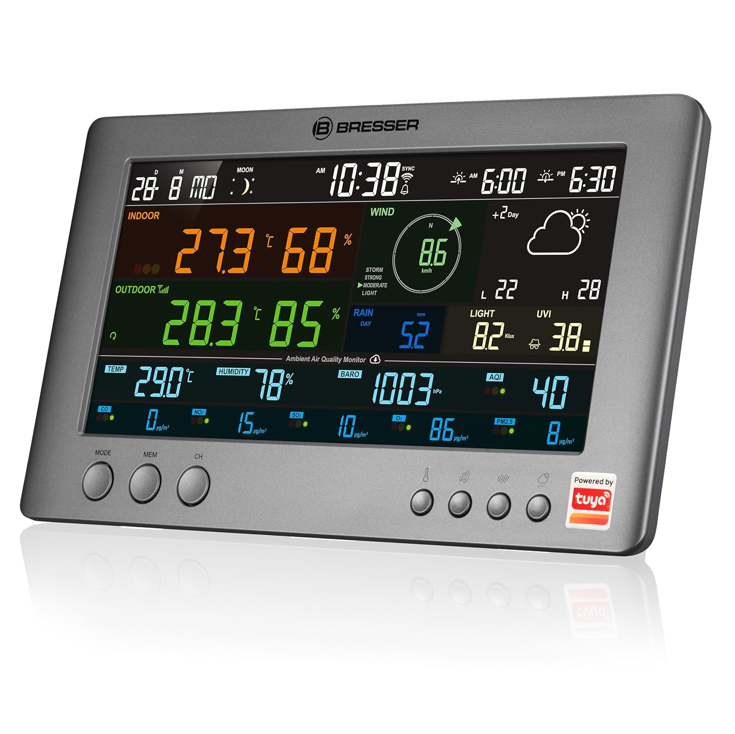 ایستگاه هواشناسی حرفهای Bresser Smart Tuya با حسگر 7 کاره، مانیتور کیفیت هوا، کنترل خورشیدی و اپلیکیشن، پیشبینی 6 روزه