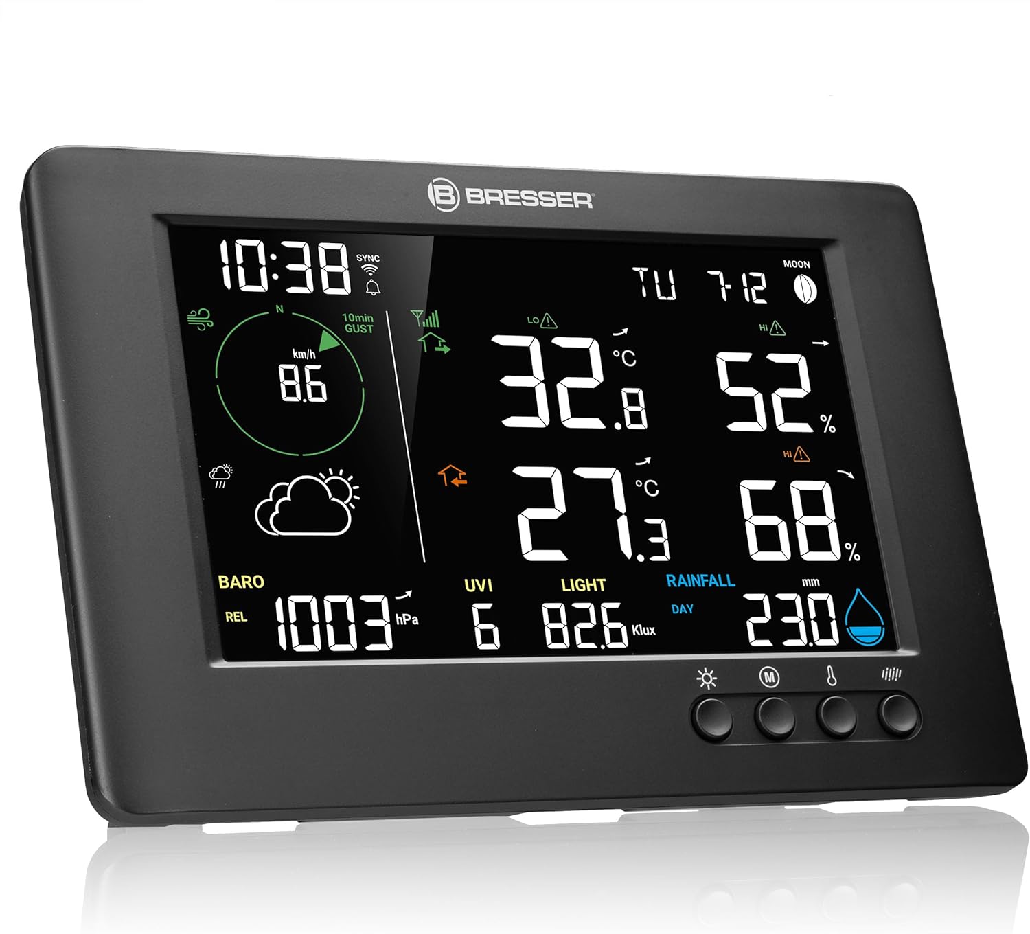 Bresser WLAN 7-in-1 Wetterstation TB: Umfangreiche Daten, Grafik-Prognose, Multi-Sensor, Innenklima-Überwachung, Alarmfunktion | قیمت یورویی 149.19€