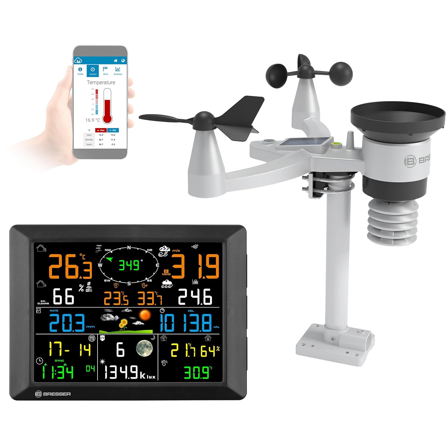 Bresser Wetterstation 1,5km Reichweite, WLAN, 7-in-1 Außensensor, Solar, UV, Wind, Regen, WLAN Upload, Alarm, Innen-/Außenklima | قیمت یورویی 279€
