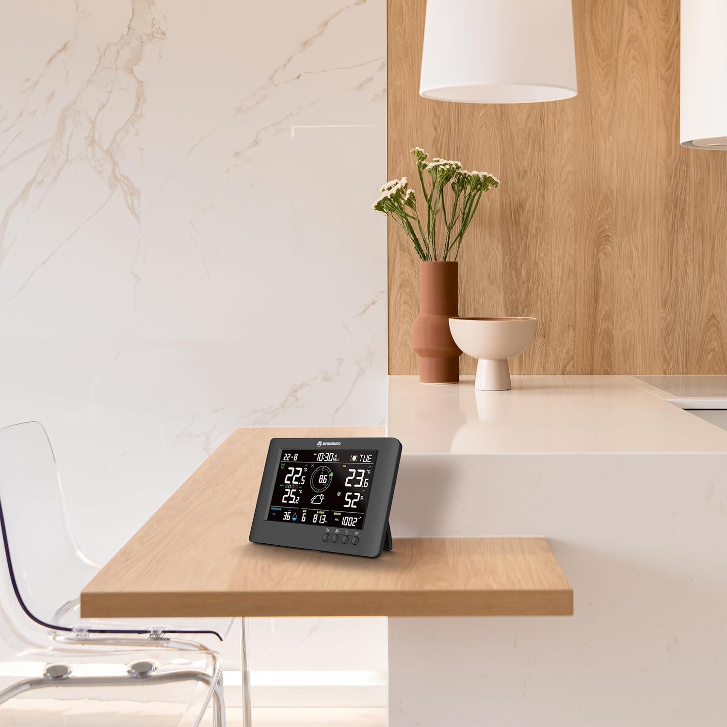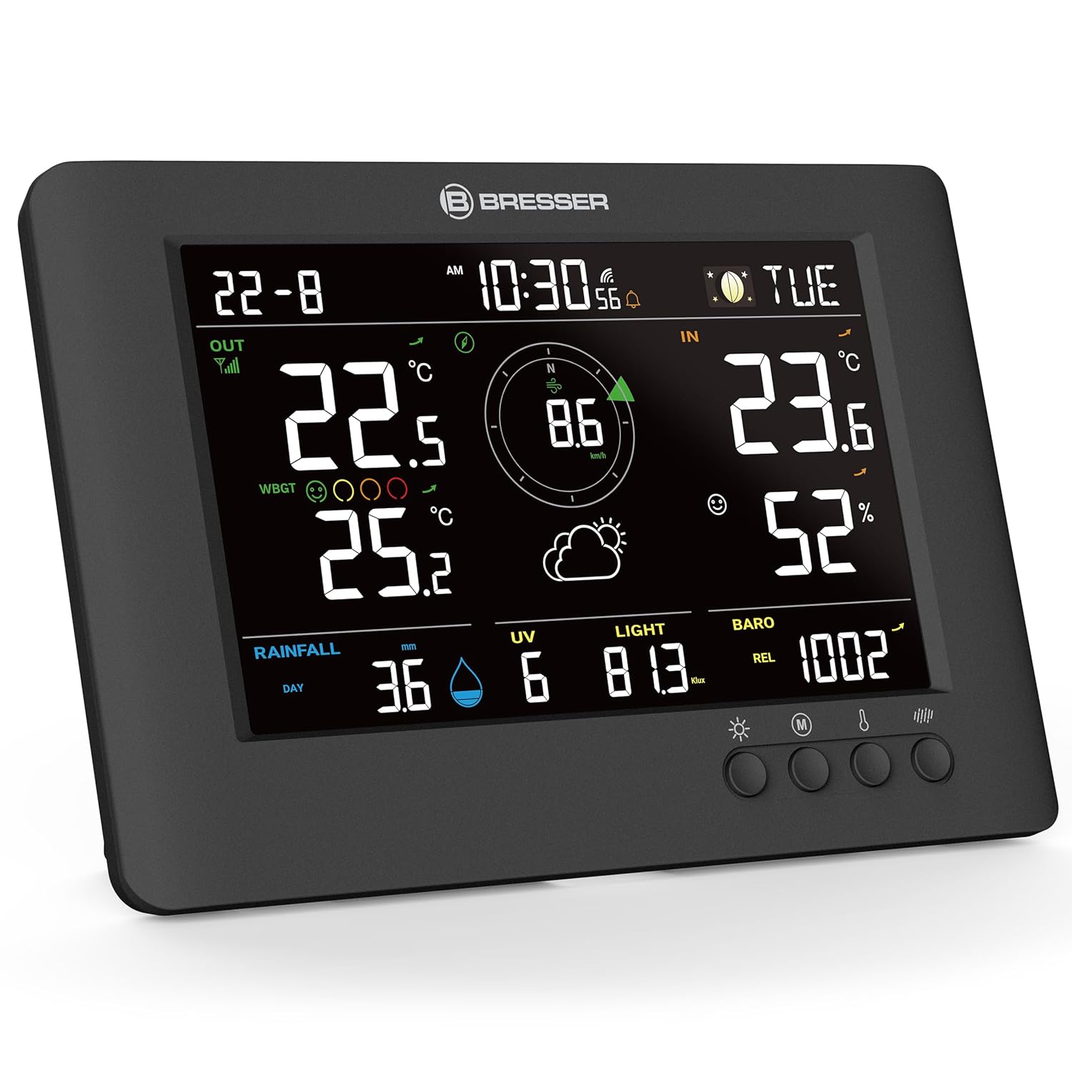 ایستگاه هواشناسی Bresser 8-in-1 ClearViewTB با شاخص استرس گرمایی، سنسور Sensirion، سنسور چندگانه 8-in-1، هشدارهای آب و هوایی، حافظه حداکثر/دقیقه مقدار