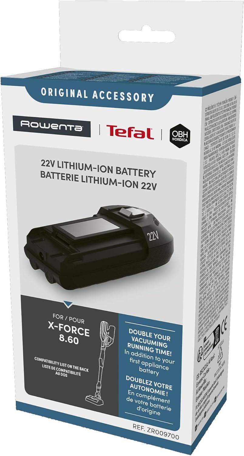 Rowenta ZR009700 X-Force 8.60 Lithium-Ionen-Akku | 22 Volt | 35 Minuten längere Saugerfahrung | kompatibel mit X-Force 8.60 RH96/TY96/EO96-Sortimenten | Schwarz | قیمت یورویی 79.99€