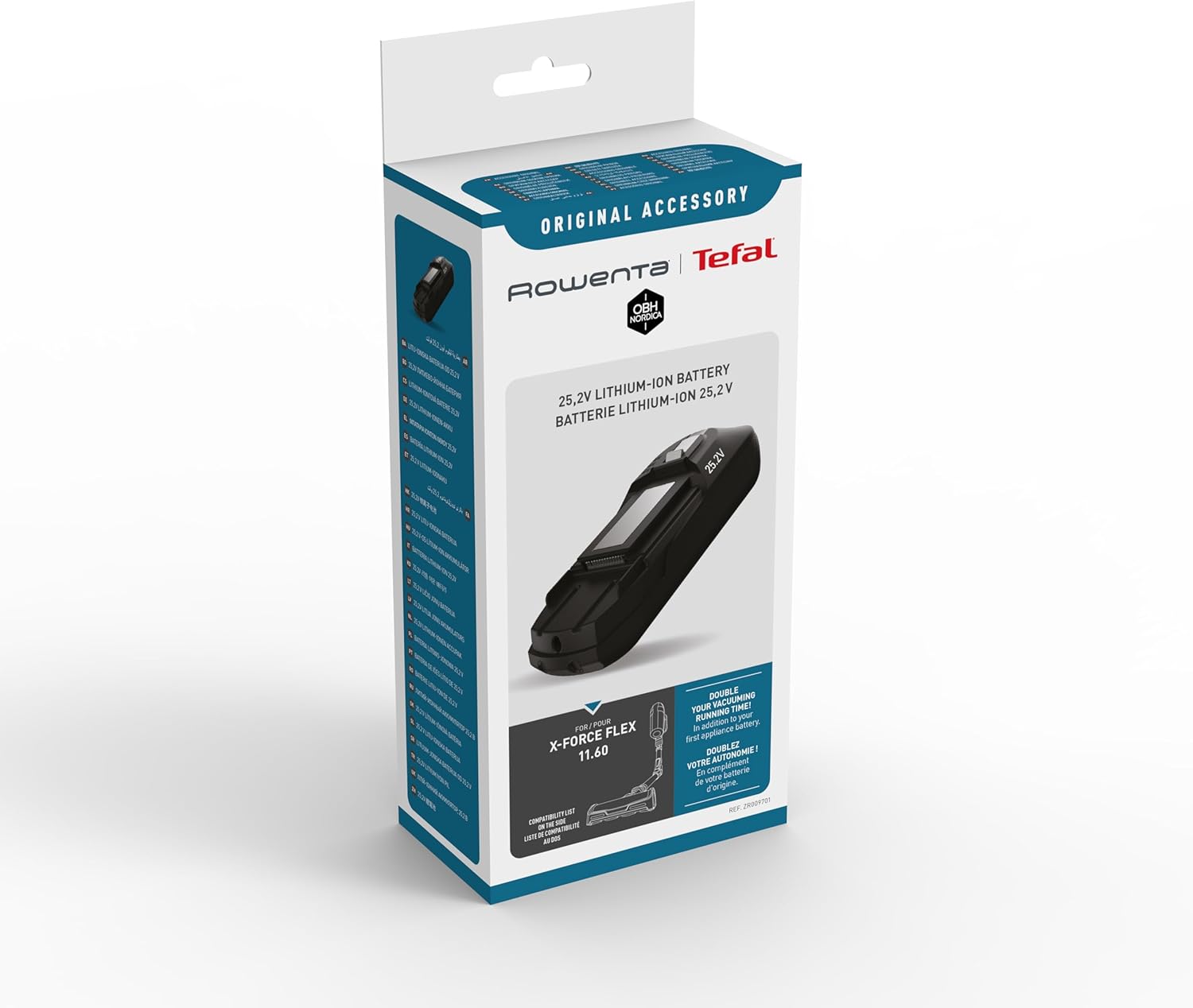 BEEINDRUCKENDE AUTONOMIE: Mit diesem leistungsstarken Wechselakku können Sie bis zu 45 Minuten länger staubsaugen (mit Handteil und im leistungsstarken Eco-Modus) LEISTUNGSSTARK: Mit seinen 7 Zellen und 25,2 V Leistung sorgt der Akku für eine hohe, konstante Saugleistung KOMPATIBILITÄT: Lithium-Ionen-Akku kompatibel mit der Staubsauger Serie X-Force 11.60 von Rowenta EINFACHE HANDHABUNG: Der herausnehmbare Akku erleichtert das Aufladen Ihres Staubsaugers; dank Zusatzakku kann weiter gesaugt werden, während ein Akku lädt | قیمت یورویی : 110.75€