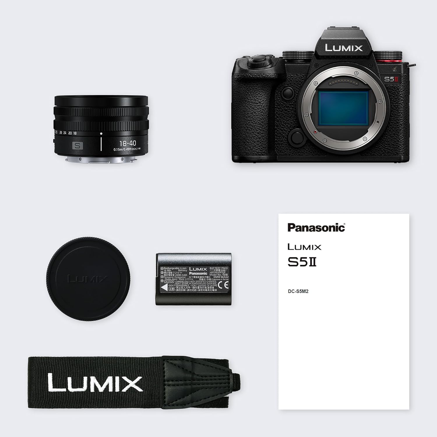 Panasonic DC-S5M2NE LUMIX DC-S5M2 Full Frame Mirrorless Camera Body, 4K 60P and 6k 30P Video Recording, Flip Screen, Wi-Fi, L-Mount, Phase Hybrid AF, Active is, with S-R1840E 18-40mm S Lens, Black mit LUMIX 18-40mm Objektiv | قیمت یورویی 1499€