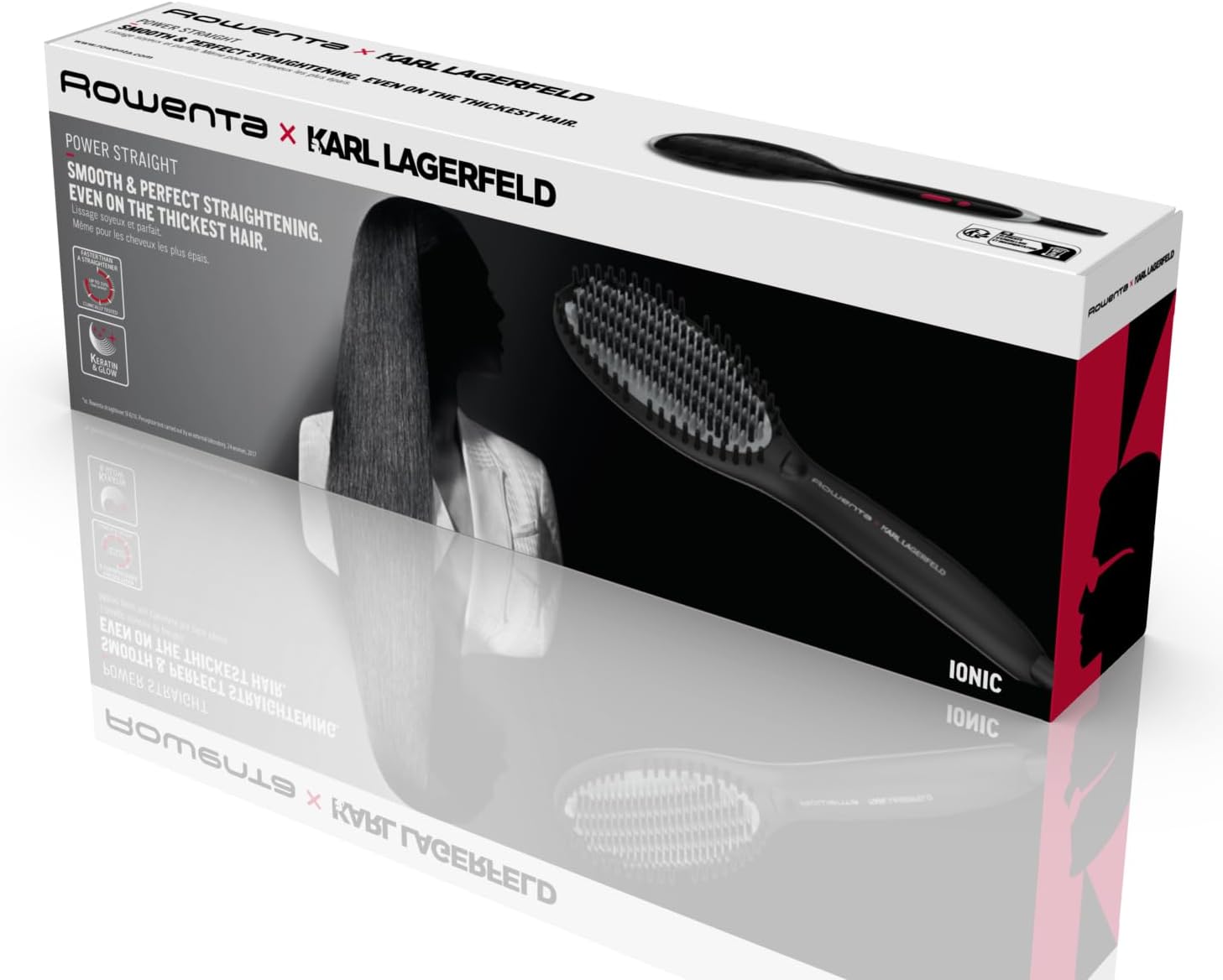 برس صاف کننده Rowenta x Karl Lagerfeld CF582L | برای انواع مو | صاف کردن آسان و سریع | ملایم برای مو | پوشش سرامیکی | عملکرد یون | مشکی