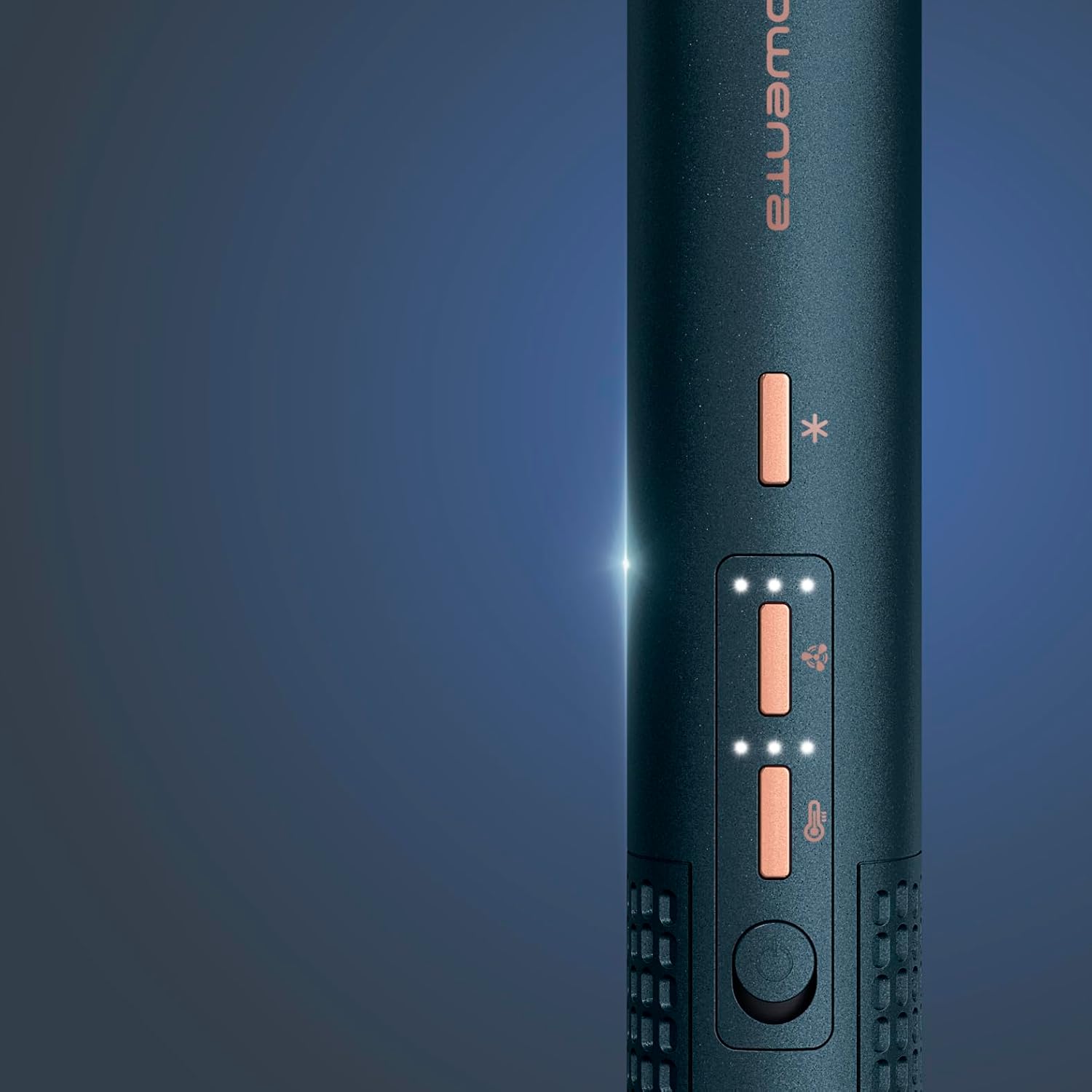 برس هوای سه بعدی Rowenta، برس هوای گرم سه کاره، تعویض آسان، ۳ حالت دما، ۳ سرعت جریان هوا، اثر یون باعث کاهش وز مو میشود، برس حالت دهنده با جریان هوای ۳۶۰ درجه، آبی متالیک، UB9720E0