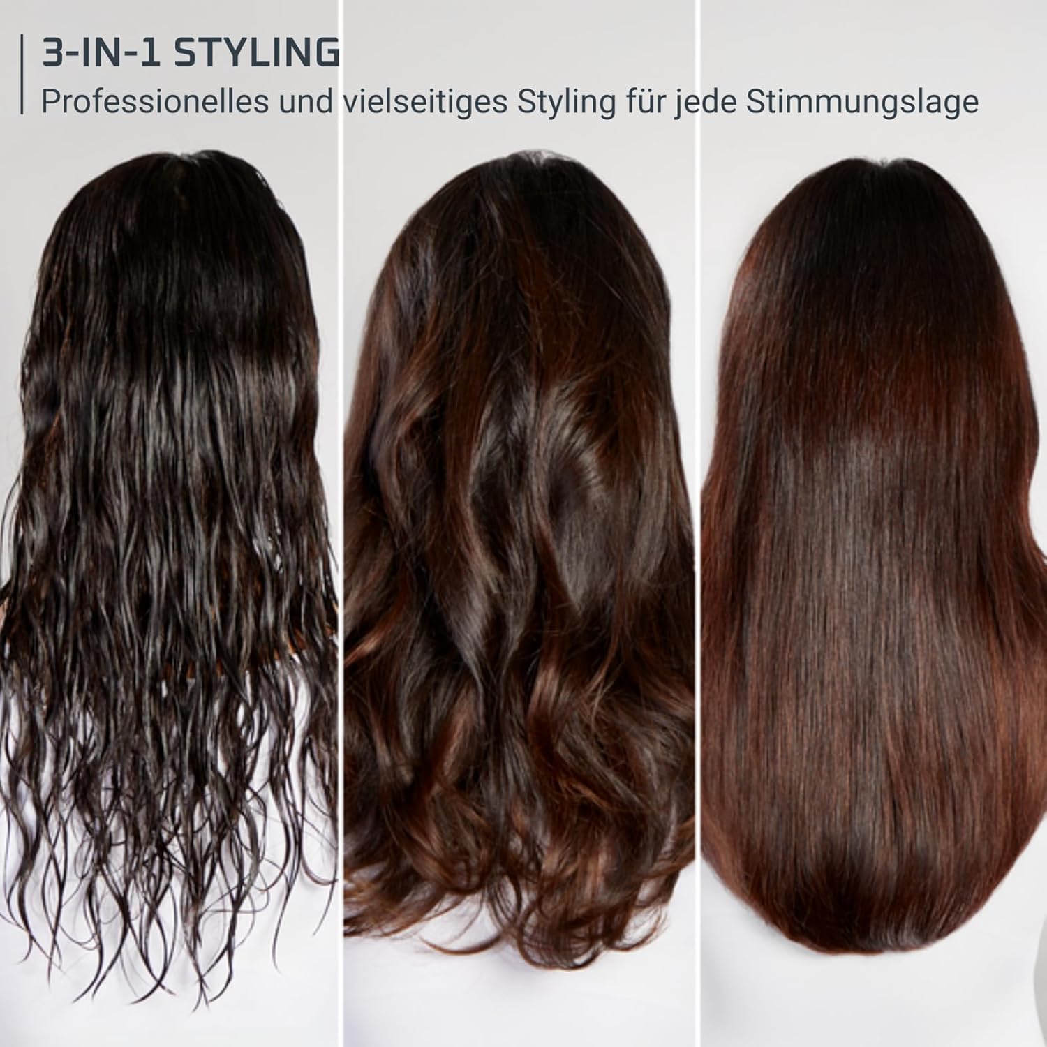 3-IN-1 STYLING: Vielseitige 3-in-1-Warmluftbürste für Looks in Salonqualität – ob glatt, voluminös oder natürlich gestylt UMSCHALT-FUNKTION: Entdecken Sie das mühelose Styling mit der Umschalt-Funktion für einen 3-in-1-Wechsel, der nicht einfacher sein könnte HAARTROCKNUNGS-MODUS: Der Haartrocknungs-Modus entfernt überschüssige Feuchtigkeit und sorgt für einen umwerfenden, natürlichen, luftgetrockneten Look mit zusätzlichem Volumen RUNDBÜRSTEN-MODUS: Der Warmluftbürsten-Modus bietet einen 360°-Luftstrom für ein perfektes Blow-out mit zusätzlichem Volumen beim Bürsten EINSEITIGE LUFTTROCKNUNG: Die Paddelbürste entwirrt und glättet das Haar für einen geschmeidigen und glänzenden Look mit einem natürlichen Touch EINFACHE EINSTELLUNGEN: 3 Geschwindigkeits- und 3 Temperaturstufen bieten einen angepassten Luftstrom für einfaches und individuelles Styling, ohne das Haar zu beschädigen STRAHLENDER GLANZ: Ionen-Effekt zur Reduzierung von statischer Aufladung & Frizz für geschmeidiges, frisierbares und glänzendes Haar; LEICHTE REINIGUNG: Abnehmbares Gitter für eine mühelose Reinigung | قیمت یورویی : 101.5€