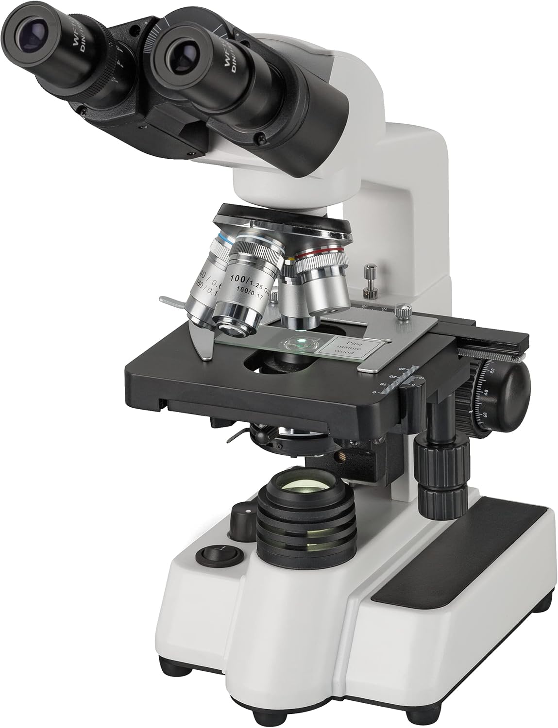 Bresser Bino 40x-1000x Vergrößerung für gehobene Ansprüche, mit LED Beleuchtung, drehbaren binokularem Aufsatz, koaxialer Kreuztisch sowie Grob- und Feinfokussierung, 5722100 Bino Single لینک آمازون : https://www.amazon.de/dp/B001ARF1S8?th=1&psc=1 یک میکروسکوپ نوری عبوری دوچشمی برای کاربران نکتهسنج. محدوده بزرگنمایی آن از ۴۰x تا ۱۰۰۰x، بر اساس چهار عدسی شیئی و یک جفت چشمی (قابل تعویض)، امکان بینشهای چشمگیر از جهان میکروسکوپی را فراهم میکند. این میکروسکوپ نوری عبوری با کیفیت بالا دارای روشنایی LED قابل تنظیم است. فاصله بین مردمکها و جبران دیوپتر قابل تنظیم هستند و سر دوچشمی میتواند 360 درجه بچرخد. صفحه متقاطع هم محور با مقیاس ورنیه امکان ترازبندی دقیق اشیاء را فراهم میکند و تنظیمات فوکوس دقیق و جزئی نیز ارائه میشود. علاوه بر این، لنزها برای جلوگیری از آسیب، فنری هستند. ابعاد: ۲۸۰x۱۷۵x۳۶۰ میلیمتر / وزن: ۳.۸ کیلوگرم / با برق شهری کار میکند (در بستهبندی موجود است) محدوده تحویل: میکروسکوپ دوچشمی؛ ۱ جفت عدسی چشمی DIN WF 10x با قطر ۲۳ میلیمتر؛ برجک عدسی شیئی ۴ حالته؛ ۴ عدسی شیئی DIN: ۴x/0.1، ۱۰x/0.25، ۴۰x/0.65، ۱۰۰x/1.25؛ کندانسور؛ صفحه مکانیکی هم محور با مقیاس ورنیه؛ کنترلهای فوکوس ریز و درشت هم محور؛ روغن ایمرسیون؛ اطلاعات فنی