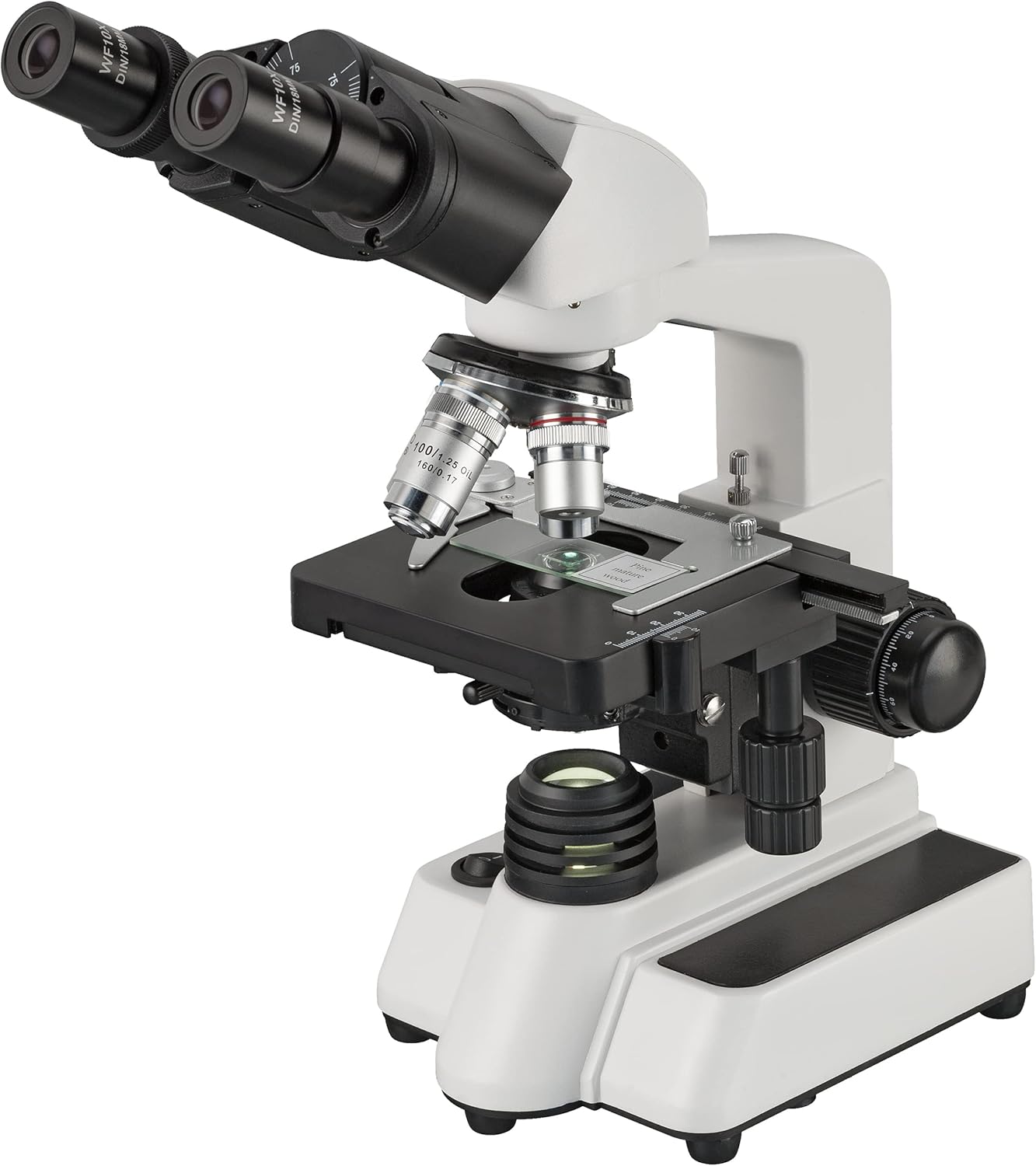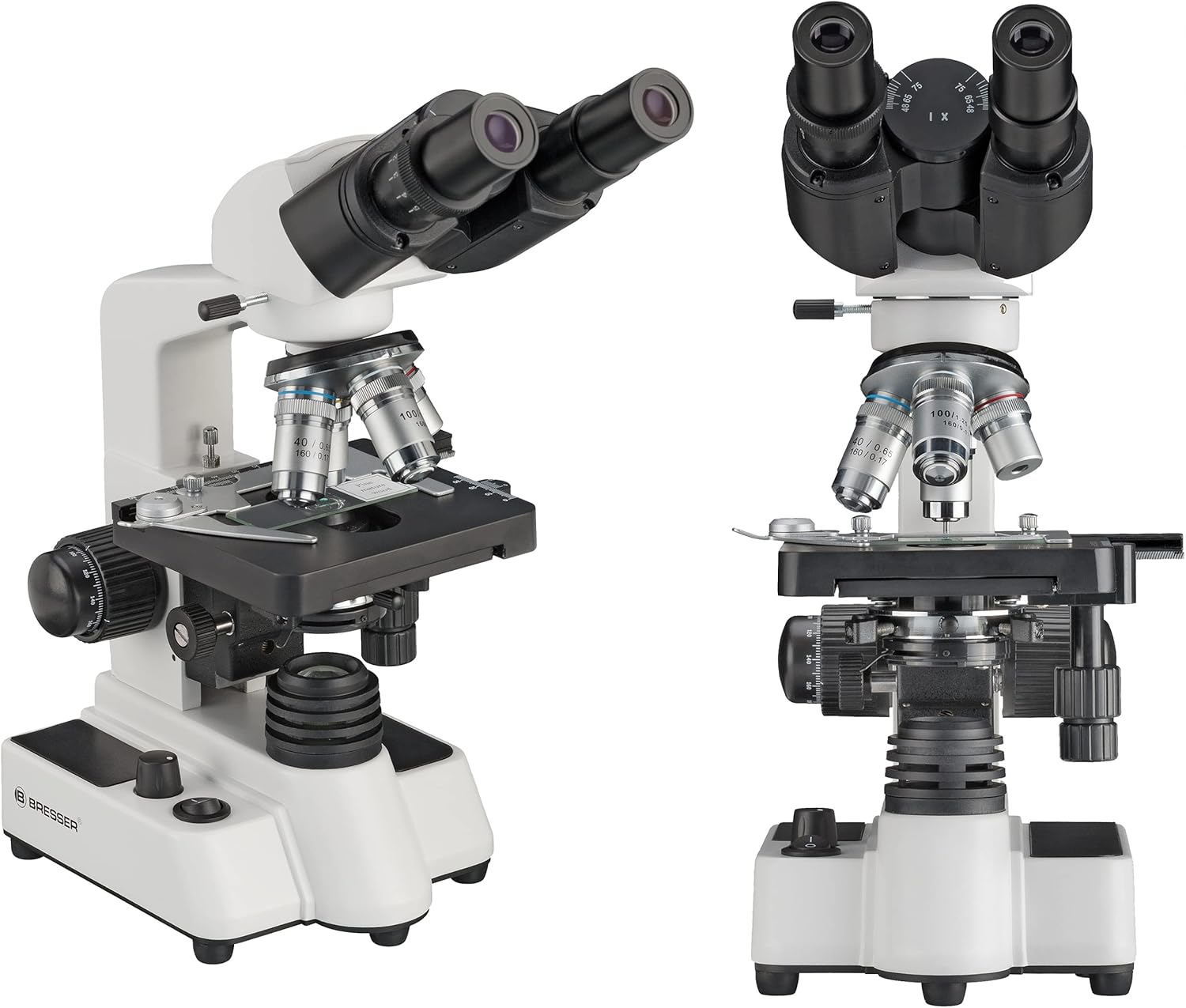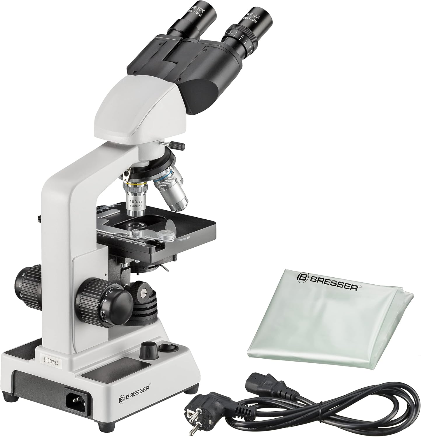 بزرگنمایی Bresser Bino 40x-1000x برای کاربران مشکلپسند، با روشنایی LED، اتصال دوچشمی چرخان، پایه مکانیکی کواکسیال و فوکوس دقیق و ظریف، 5722100 Bino Single