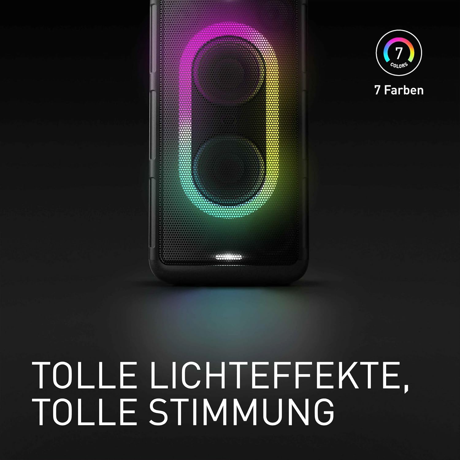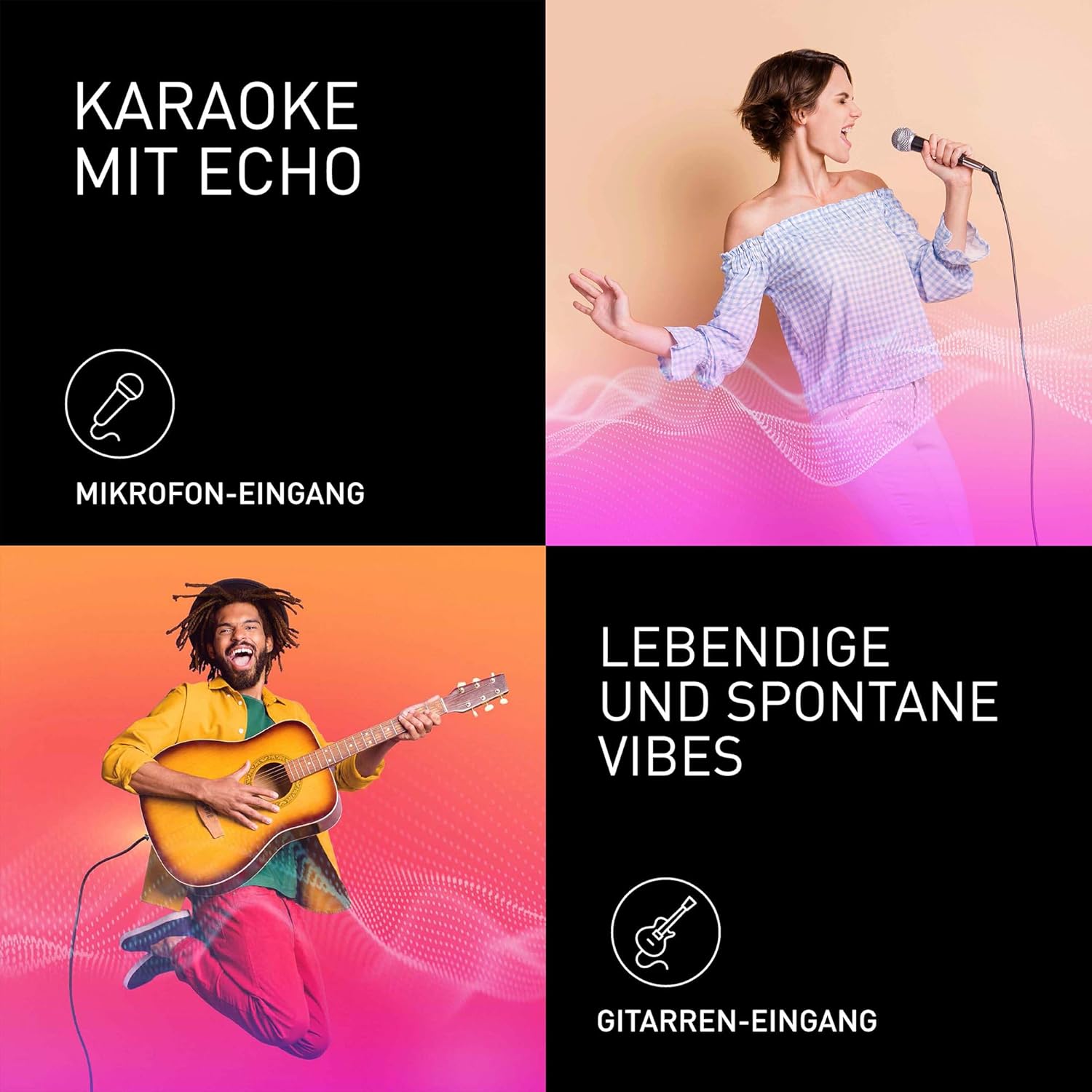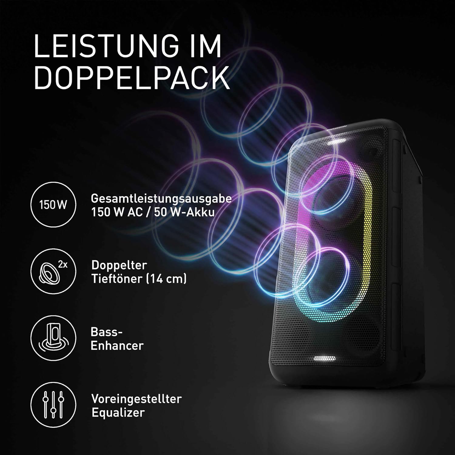 KRAFTVOLLER SOUND: Erleben Sie 150 W reine Audioleistung mit dem 14 cm Doppel-Tieftöner, 2 Hochtönern und 2 Bassreflex-Anschlüssen, für satte Bässe und kristallklare Stimmen TRAGBARER LAUTSPRECHER: Nehmen Sie die Party überall hin mit dank integriertem Tragegriff und dem 15-Stunden-Akku dieses kabellosen HiFi-Lautsprechers, perfekt für Straßentänze, Sport, Fitnessstudio und mehr LEBENDIGE BELEUCHTUNG: Erstellen Sie atemberaubende Lichtshows mit einzigartigen Lichtmustern und Stroboskoplichtern, die sich mit der Musik synchronisieren lassen VIELSEITIGE KONNEKTIVITÄT: Streamen Sie Musik über Bluetooth oder stellen Sie eine Verbindung über USB-A, AUX- und optische Eingänge her, während Gitarren- und Mikrofonbuchsen ideal für Karaoke oder spontane Musikdarbietungen sind TV-VERBINDUNG: Verbessern Sie Ihr Fernseherlebnis, indem Sie diesen Partylautsprecher über das mitgelieferte optische Kabel mit Ihrem Smart-TV verbinden, für Karaoke-Abende, Partys und Gesangswettbewerbe KETTENVERBINDUNG: Erweitern Sie Ihr Audio-Setup und verbessern Sie Ihren Sound, indem Sie mehrere BMAX-Lautsprecher über das 3,5 mm Mini-Jack-Audiokabel verbinden, ideal für größere Räume und Veranstaltungen | قیمت یورویی : 218.41€