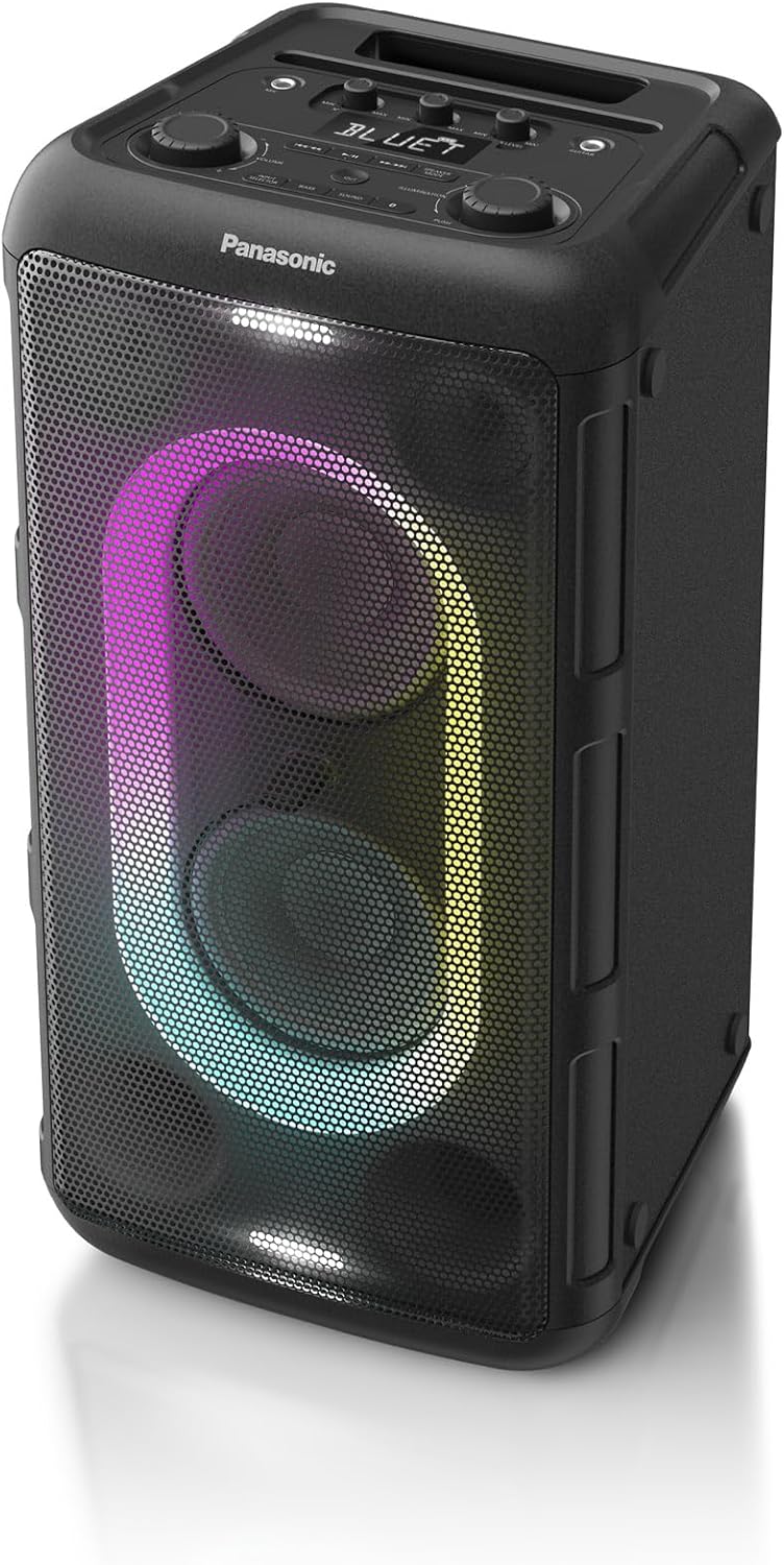 بلندگوی مهمانی قابل حمل پاناسونیک SC-BMAX10E-K با بلوتوث، نورپردازی یکپارچه، 150 وات، USB، ورودی اپتیکال برای تلویزیون، ورودیهای گیتار و میکروفون برای کارائوکه، مشکی. بلندگوی مهمانی قابل حمل با بلوتوث - 150 وات