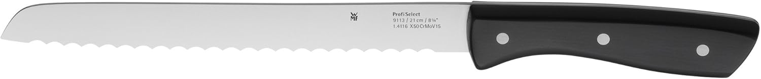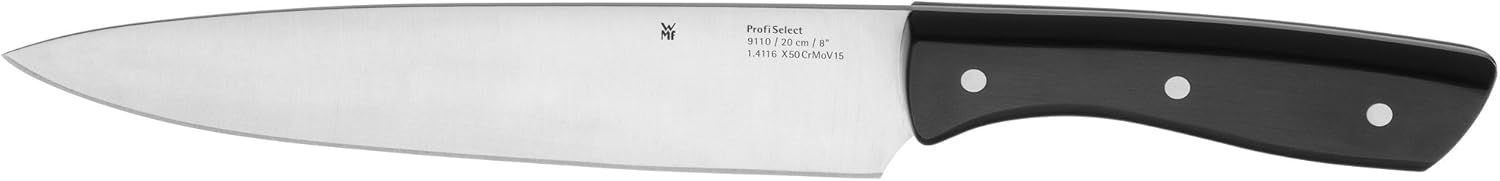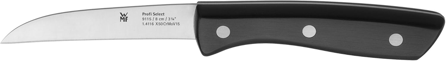 WMF Messerblock mit Messerset 7-teilig, Küchenmesser Set mit Messerhalter, 6 scharfe Messer, Bambus-Block, Spezialklingenstahl Messerblock – 7-teilig mit 6 Messern لینک آمازون : https://www.amazon.de/dp/B07NBWT2YR?th=1&psc=1 محتویات: ۱ عدد بلوک چاقو (۲۰ × ۲۰ × ۸ سانتیمتر)، ۱ عدد چاقوی سرآشپز ۲۰ سانتیمتر، ۱ عدد چاقوی نان دندانهدار ۲۱ سانتیمتر، ۱ عدد چاقوی همهکاره ۱۷ سانتیمتر، ۱ عدد چاقوی پوستکنی ۶ سانتیمتر، ۱ عدد چاقوی چربیپزی ۱۰ سانتیمتر، ۱ عدد چاقوی سبزیجات ۸ سانتیمتر - شماره کالا: ۱۸۷۸۱۳۹۹۹۰ جنس: تیغهها از جنس فولاد مخصوص ضد زنگ و مقاوم در برابر اسید. دستهی یکپارچه پرچ شده از پلاستیک با کیفیت بالا برای بهداشت مطلوب. بامبو تیزی ماندگار به لطف تیغه سختکاری شده - به طور قابل توجهی مقاومتر از فولاد ضد زنگ معمولی. چاقوی نان با لبه دندانهدار: کاملاً صاف برش میدهد بدون اینکه تیغه لیز بخورد. دسته ارگونومیک و وزن متعادل تیغه و دسته برای راحتی در استفاده. هیچ جابجایی محسوسی بین تیغه، تکیهگاه و دسته وجود ندارد. نگهداری ایمن و منظم چاقو: چاقوهای آشپزخانه همیشه در دسترس هستند. بامبو از تیغههای تیز محافظت میکند. فقط چاقوهای خشک را داخل جعبه چاقو قرار دهید.