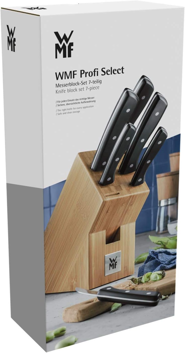 بلوک چاقو WMF با مجموعه 7 تکه چاقو، مجموعه چاقوی آشپزخانه با نگهدارنده چاقو، 6 چاقوی تیز، بلوک بامبو، بلوک چاقوی فولادی تیغه مخصوص - مجموعه 7 تکه با 6 چاقو