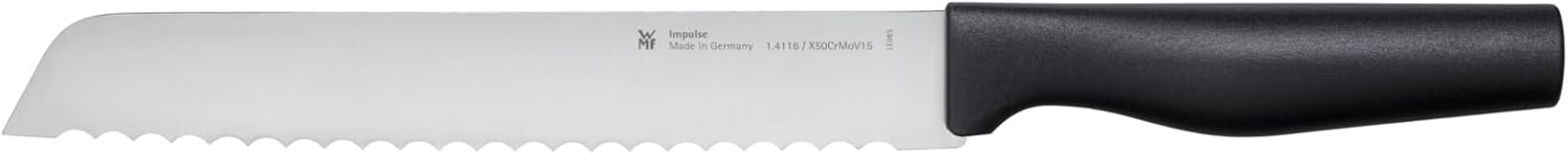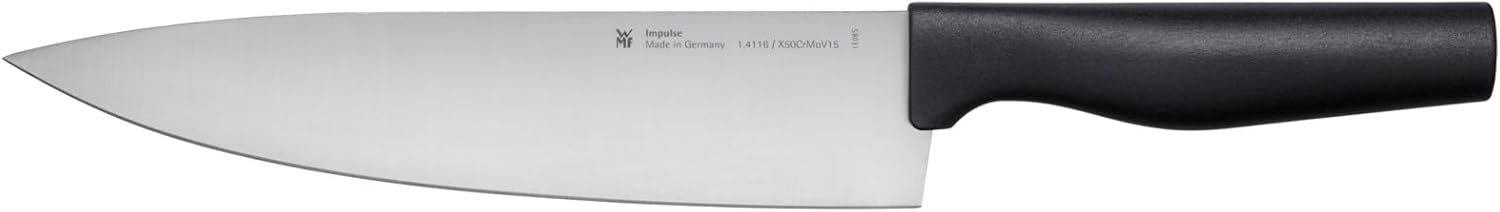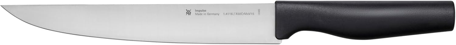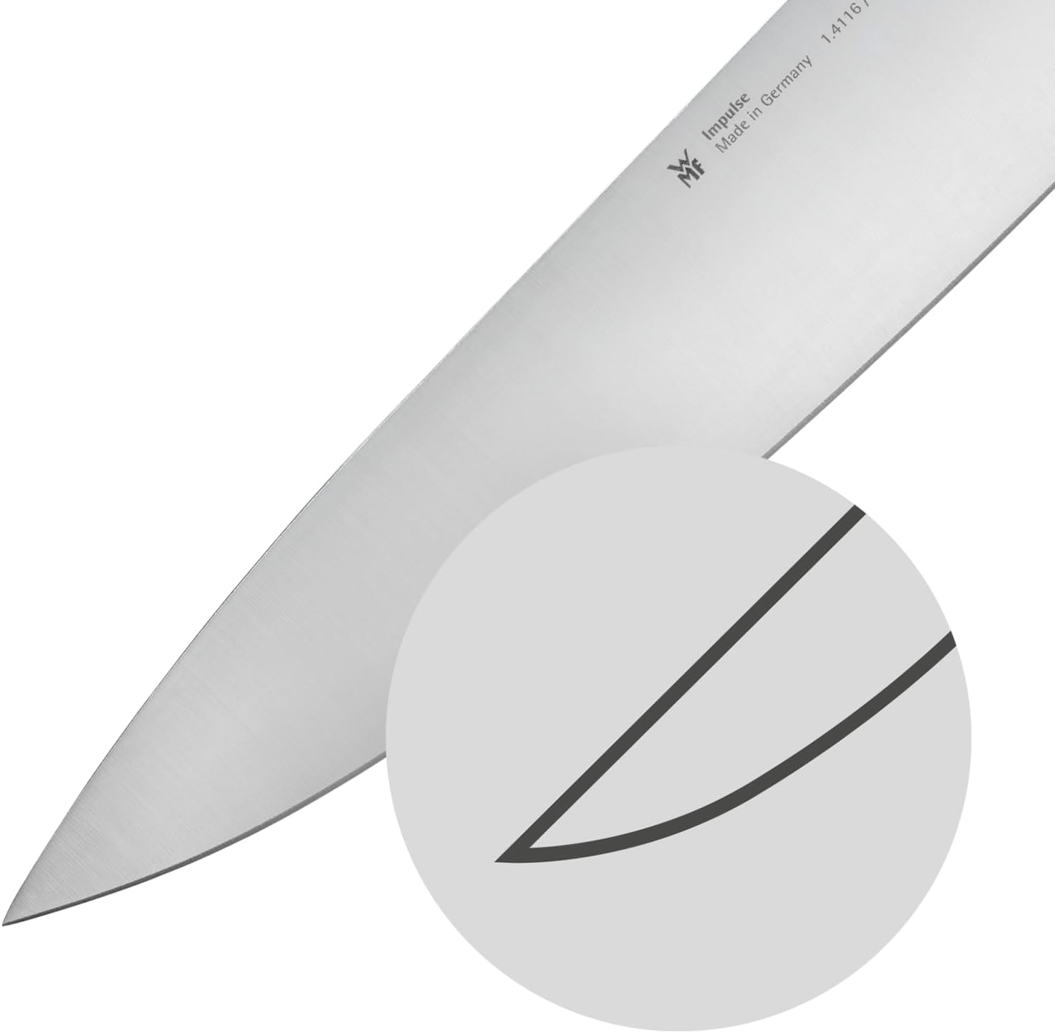WMF Impulse Messerblock mit Messerset 7teilig, Made in Germany, 4 Messer, Küchenschere, Wetzstahl, Gummibaumholz, platzsparende Aufbewahrung, exzellente Schärfe, perfekte Ergonomie Messerblock – 7-teilig mit Küchenschere لینک آمازون : https://www.amazon.de/dp/B0FD3GL7T7?th=1&psc=1 محتویات: ۱ عدد بلوک چاقو، ۱ عدد چاقوی سرآشپز (۲۰ سانتیمتر)، ۱ عدد چاقوی کندهکاری (۲۰ سانتیمتر)، ۱ عدد چاقوی نان (۲۰ سانتیمتر)، ۱ عدد چاقوی سبزیجات (۹ سانتیمتر)، ۱ عدد قیچی آشپزی، ۱ عدد تیغه فولادی تیزکن چوب لاستیکی - شماره کالا: ۱۸۹۷۷۳۹۹۹۲ جنس: فولاد تیغه آلمانی مقاوم در برابر خوردگی و سختکاری ویژه - کیفیتی مستحکم برای استفاده مداوم. طراحی ارگونومیک و مدرن دسته با انتقالی بینقص به تیغه محکم. وضوح عالی روز به روز به لطف ترکیب نوآورانه فرآیند سختکاری بهینه و سنگزنی دقیق رباتیک با کنترل لیزری (دارای گواهینامه DIN EN ISO 8442-5) با دقت از مواد باکیفیت در آهنگری تیغه اختصاصی WMF در آلمان ساخته شده است - برای عملکرد عالی و بالاترین کیفیت. مجموعه کامل، شامل یک بلوک چاقو از جنس چوب لاستیکی با کیفیت بالا برای صرفهجویی در فضا و نگهداری ایمن. فقط چاقوهای خشک را داخل بلوک چاقو قرار دهید.
