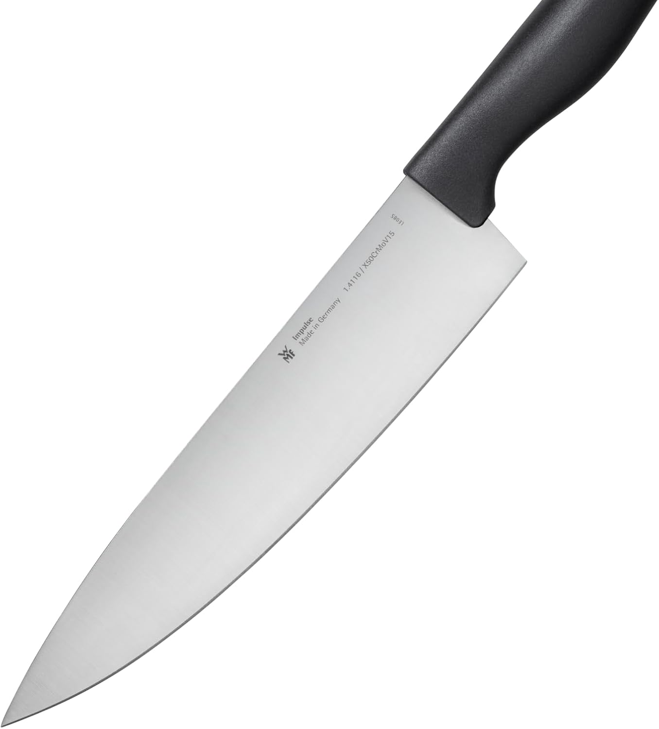 Inhalt: 1x Messerblock, 1x Kochmesser 20 cm, 1x Fleischmesser 20 cm, 1x Brotmesser 20 cm, 1x Gemüsemesser 9 cm, 1x Kochschere, 1x Wetzstahl aus Gummibaumholz - Artikelnummer: 1897739992 Material: Speziell gehärteter, korrosionsbeständiger, deutscher Klingenstahl – robuste Qualität für den Dauereinsatz. Ergonomisches, modernes Griffdesin mit nahtlosem Übergang zur robusten Klinge Exzellente Schärfe Tag für Tag durch die innovative Kombination aus optimiertem Härteverfahren und präzisem lasergesteuertem Roboterschliff (zertifiziert nach Din EN ISO 8442-5) Mit viel Sorgfalt aus hochwertigen Materialien in eigener Klingenschmiede bei WMF in Deutschland hergestellt - für perfekte Funktionalität in höchster Qualität Umfangreiches Set, inklusive hochwertigem Messerblock aus Gummibaumholz zur platzsparenden und sicheren Aufbewahrung. Nur abgetrocknete Messer in den Messerblock stecken | قیمت یورویی : 127.47€