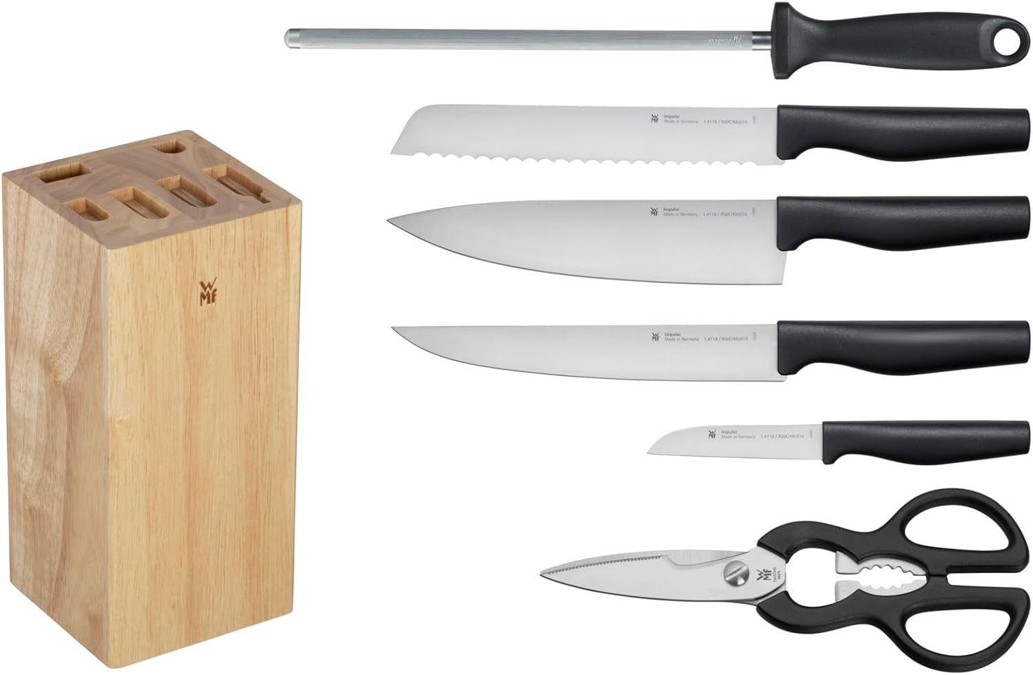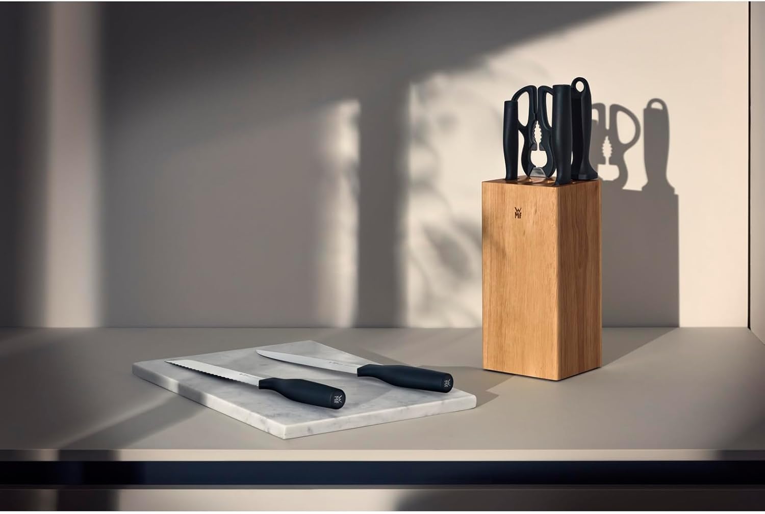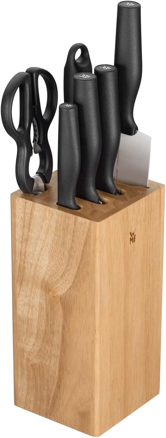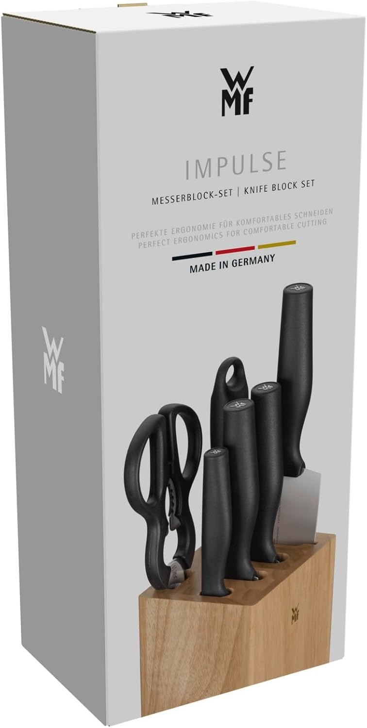 WMF Impulse Messerblock mit Messerset 7teilig, Made in Germany, 4 Messer, Küchenschere, Wetzstahl, Gummibaumholz, platzsparende Aufbewahrung, exzellente Schärfe, perfekte Ergonomie Messerblock – 7-teilig mit Küchenschere | قیمت یورویی 127.47€