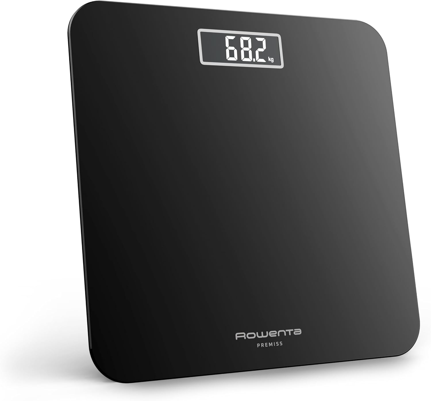 ترازوی حمام Rowenta Premiss 2.0، صفحه نمایش LCD خوانا، تا 160 کیلوگرم، ارتفاع تنها 2.2 سانتیمتر، ابعاد 30x30 سانتیمتر، مشکی، BS1800V0 مشکی I