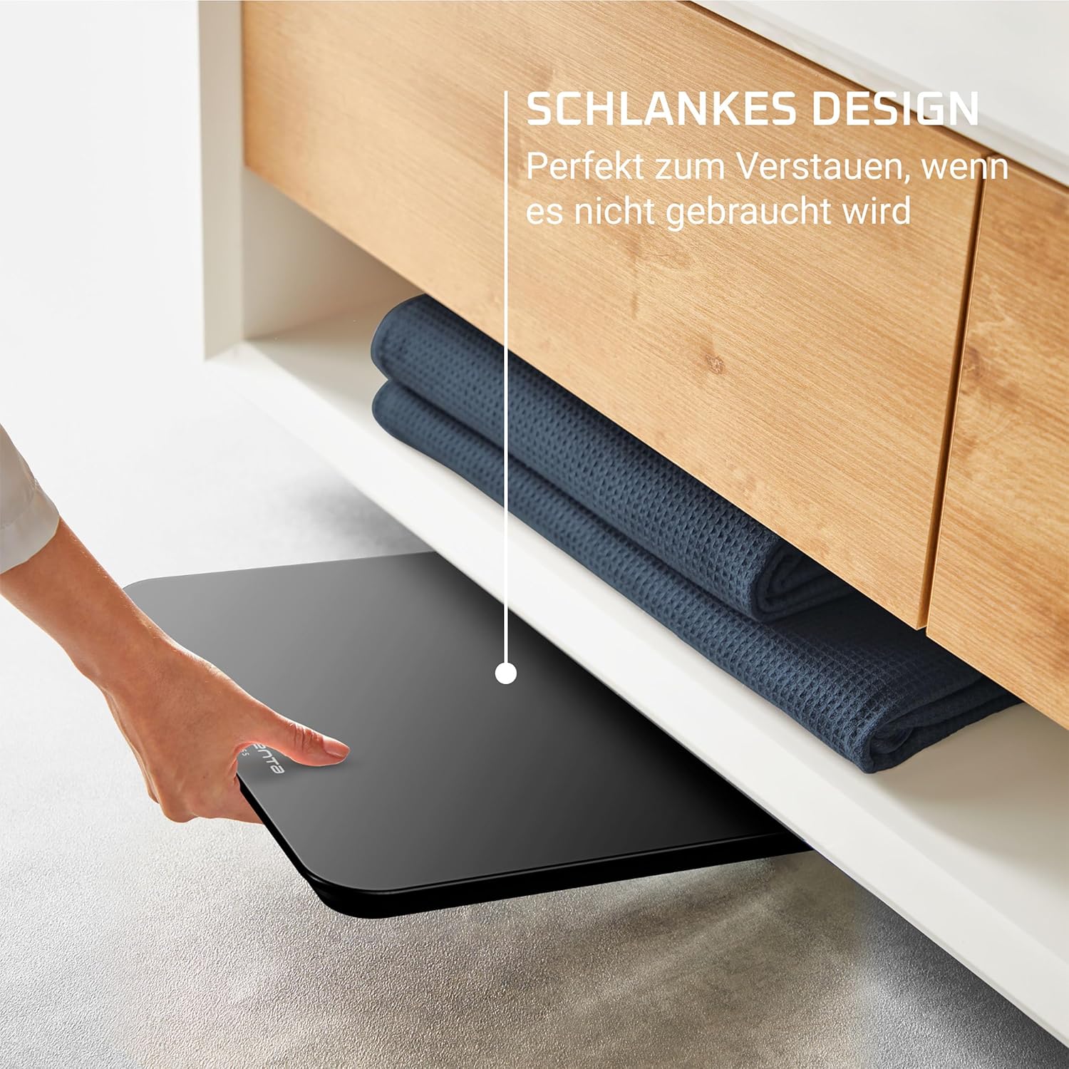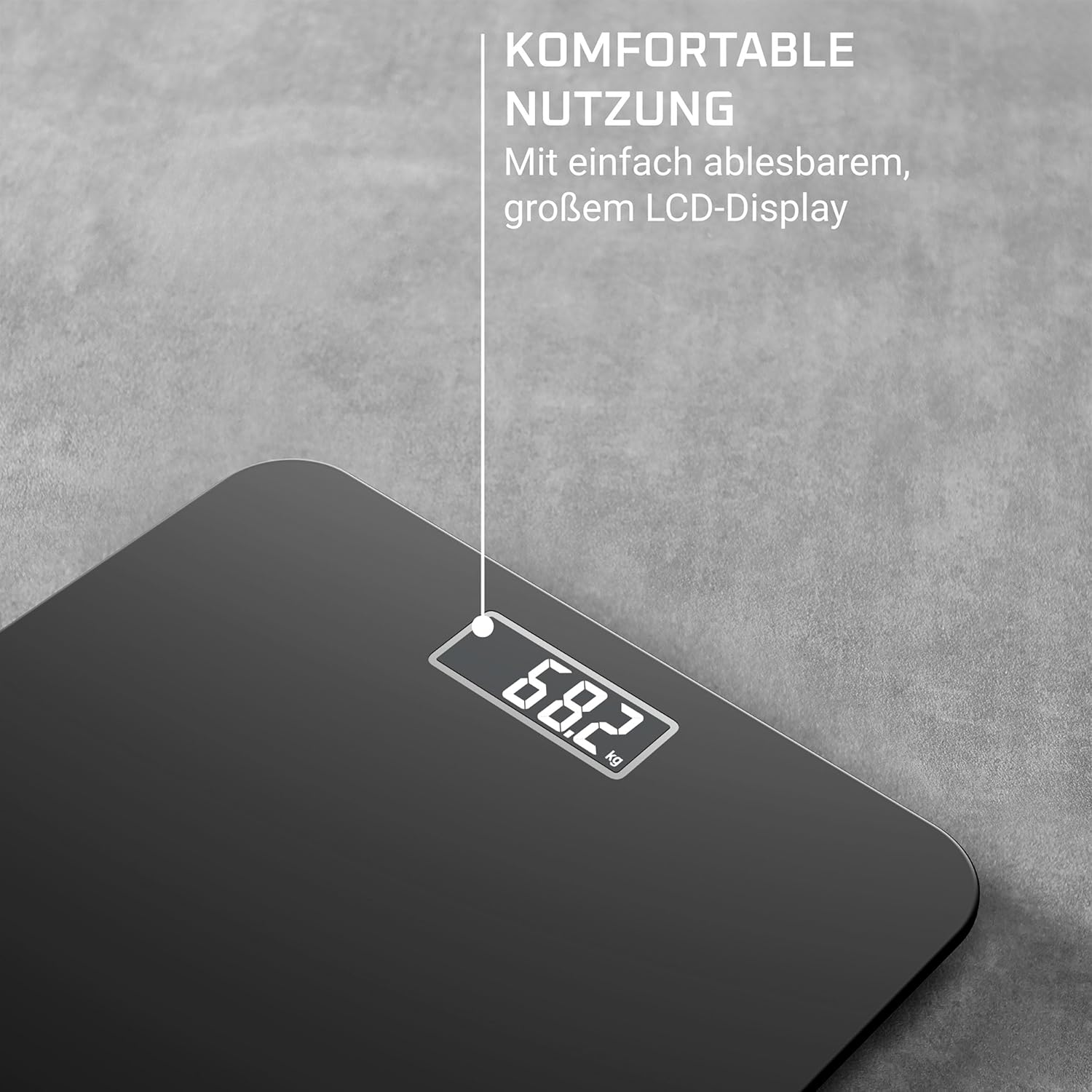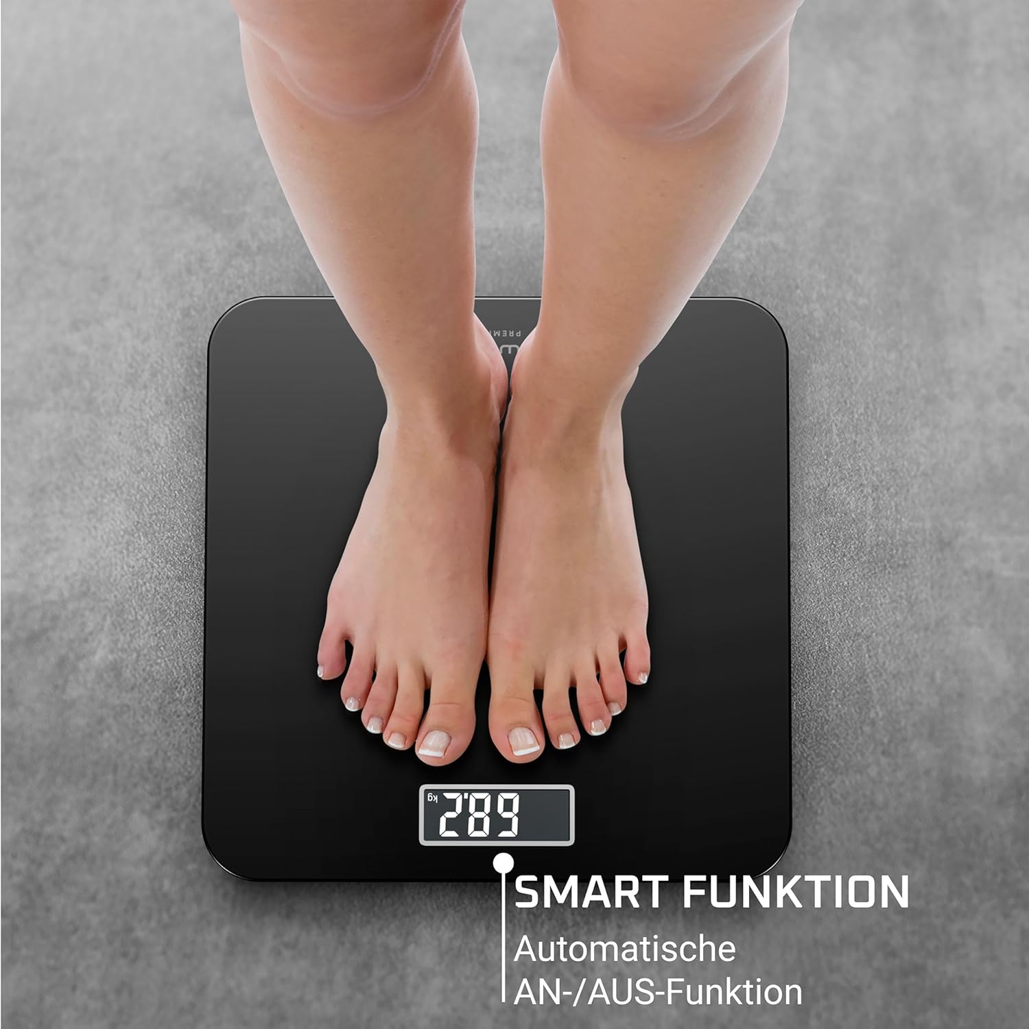 Bequeme Benutzung: Einfach ablesbares LCD-Display mit breiter Glasplatte (30 x 30 cm) für bis zu 160 kg und mit 100-g-Schritten Einfaches Verstauen: Die schmale Waage ist nur 2,2 cm hoch - ideal zum diskreten Verstauen, wenn sie nicht verwendet wird Clevere Funktionen: Die Waage schaltet sich bei jeder Verwendung automatisch ein und aus und bietet die Wahl zwischen den metrischen (kg) und den angloamerikanischen (st, lb) Einheiten Einfache Reinigung: Die glatte Hartglasplatte lässt sich einfach reinigen und sorgt so für optimale Hygiene Sofort einsatzbereit: Sofort verwendbare Waage dank der beiden AAA-Batterien, die im Lieferumfang enthalten sind | قیمت یورویی : 19.99€