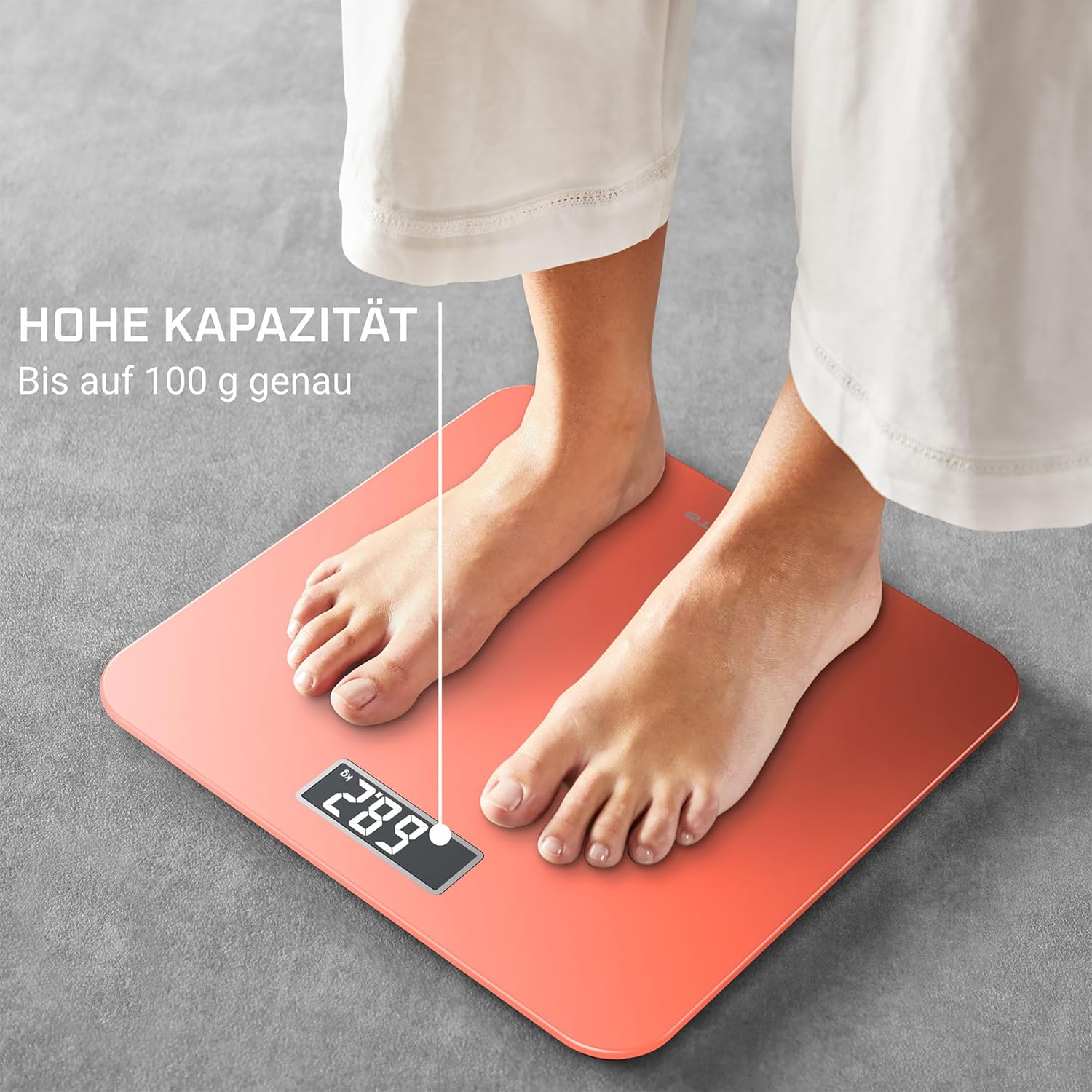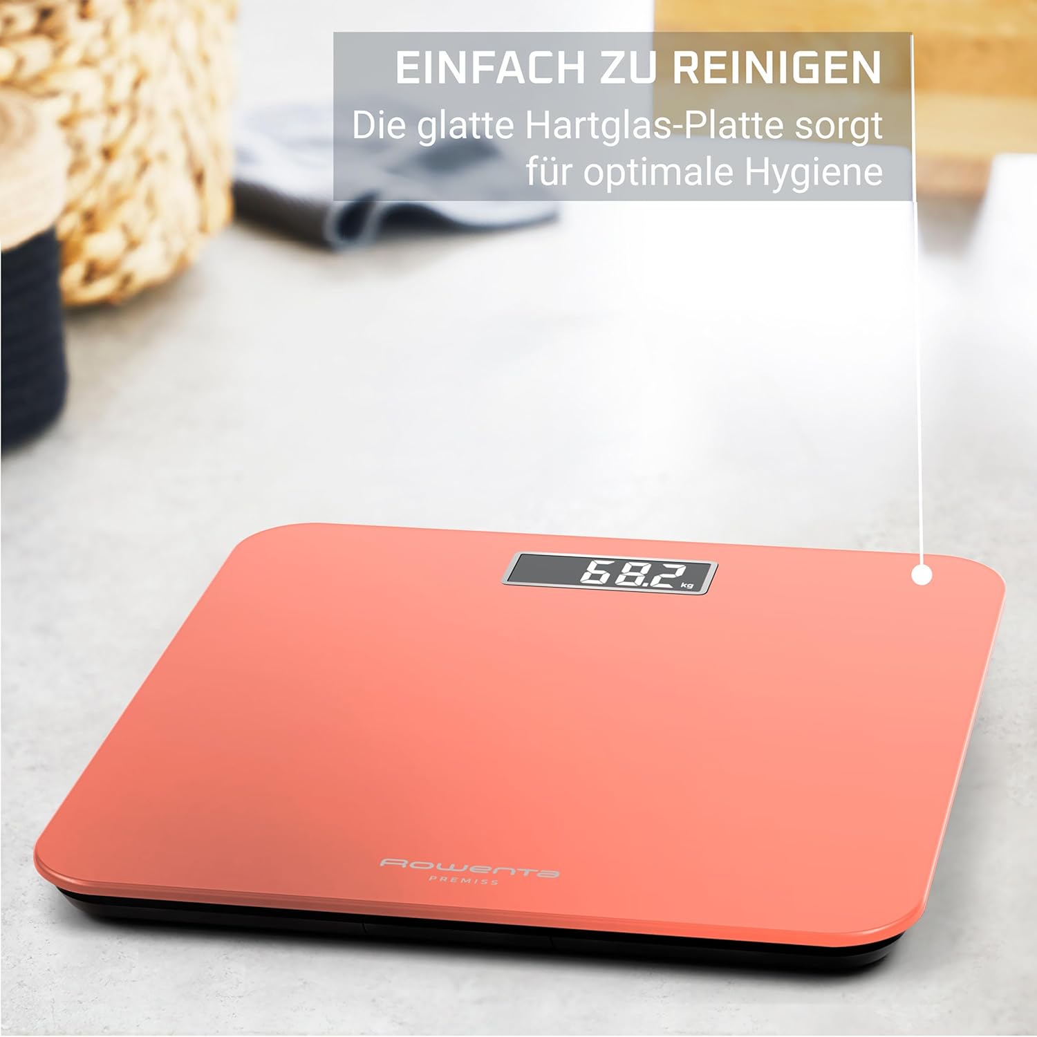 Rowenta Premiss 2.0 Personenwaage, einfach abzulesendes LCD-Display, bis 160 kg, nur 2,2 cm hoch, 30x30 cm, Orange, BS1803V0 | قیمت یورویی 19.99€